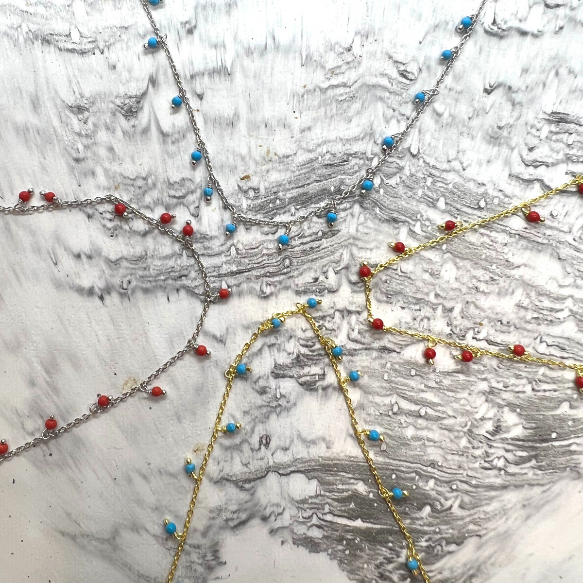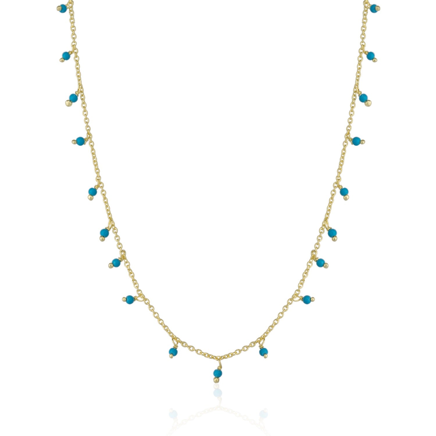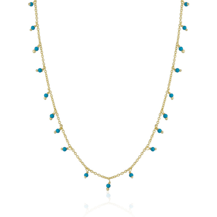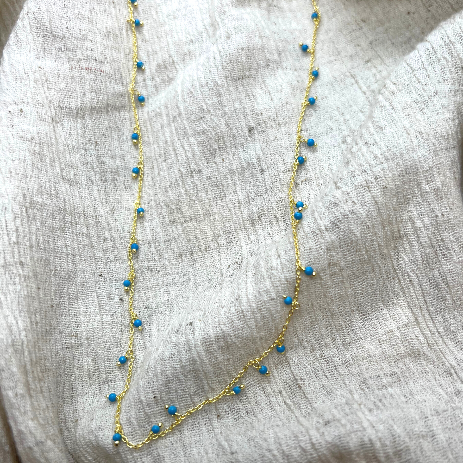 Blue Turquoise Beaded Sterling Silver Chain Necklace Gold