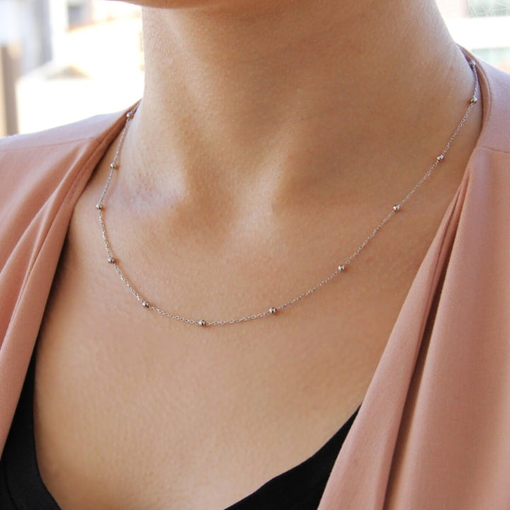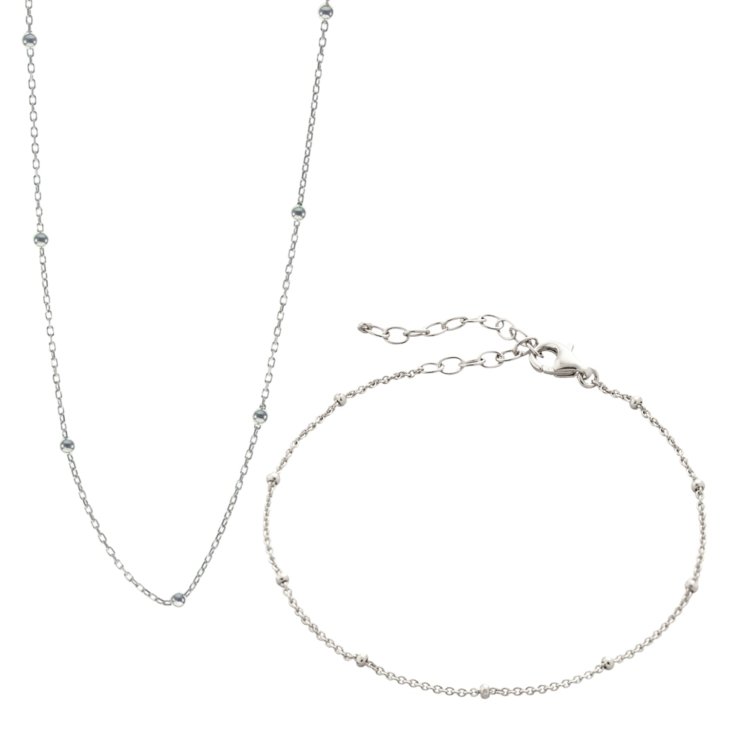 Bead Chain Sterling Silver Satellite Necklace Bracelet Set