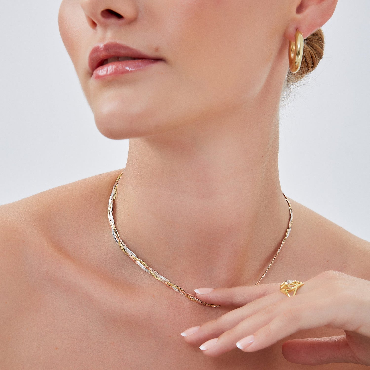 Gold Rose Gold Silver Spiral Sterling Silver Flat Necklace