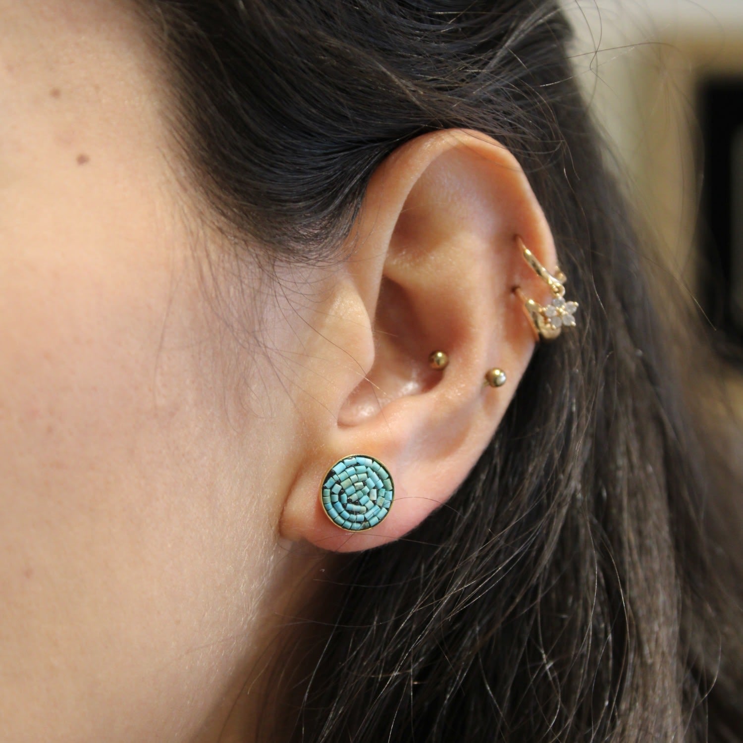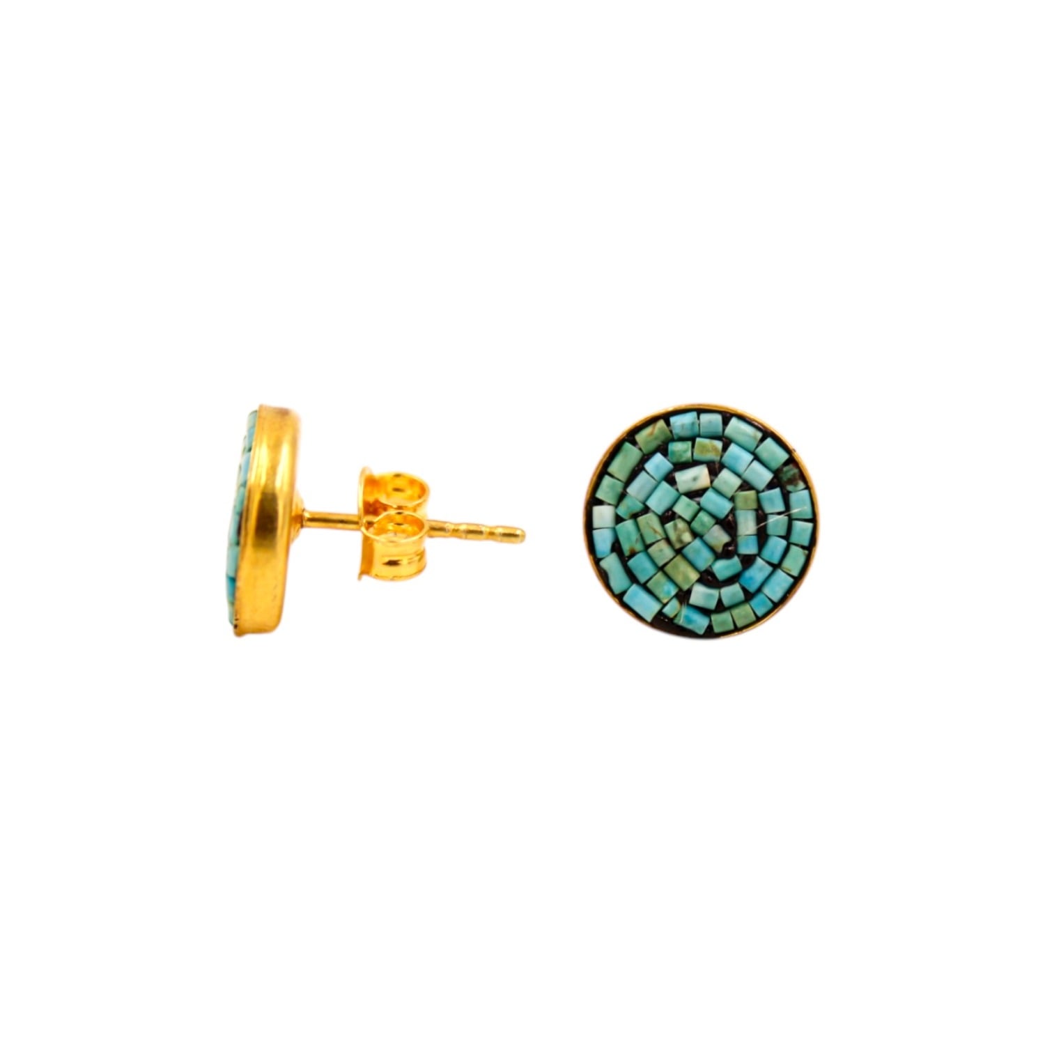 These earrings are made from Sterling Silver and are Gold Plated. They feature a Turquoise gemstone.