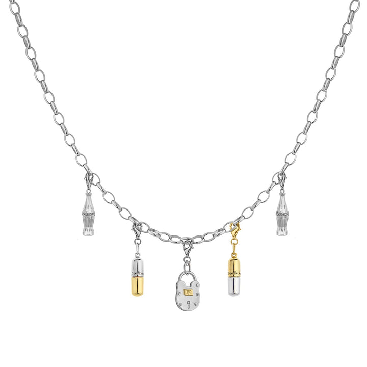 Start you collection of True Rocks charms, hang them on our 18" Belcher charm necklace, or our Belcher charm bracelet. Pick N Mix it from our Charm collection of plain Sterling Silver, Gold, 2 Tone Gold/Silver or Silver/Gold Including Horse shoes, Skulls, Pills, Plectrums, Razor blades, Stars & Lips charms, but to name a few! Bespoke your own statement piece! Do not wear in water