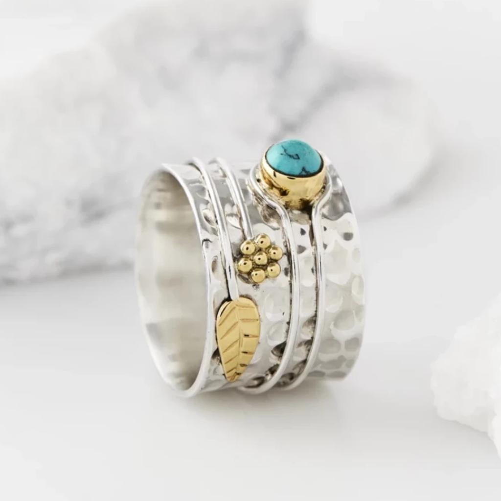 This Secret Garden Silver Ring – Turquoise by Charlotte’s Web Jewellery is an ornate tribute to nature’s hidden beauty. Its handcrafted vines, leaves, and blossoms encircle a vivid turquoise stone—the December birthstone—radiating serenity and warding off negativity. A symbolic piece of boho elegance, it brings the essence of a secret garden to everyday wear.