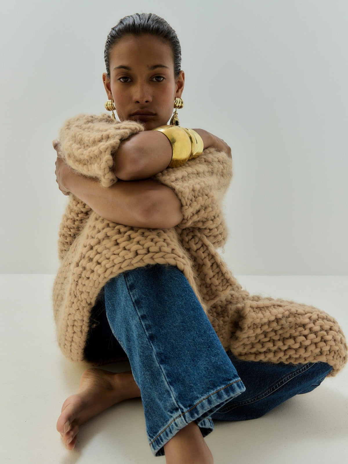 This Lali Bracelet by Sita Nevado is a bold and striking piece that commands attention with its substantial, XL slave-style design. Crafted from brass with a protective finish, this bracelet exudes a powerful and confident vibe. Its clean lines and robust structure make it a versatile statement accessory that can elevate both casual and formal looks. This piece is perfect for those who want to add a touch of modern, sculptural flair to their jewelry collection.