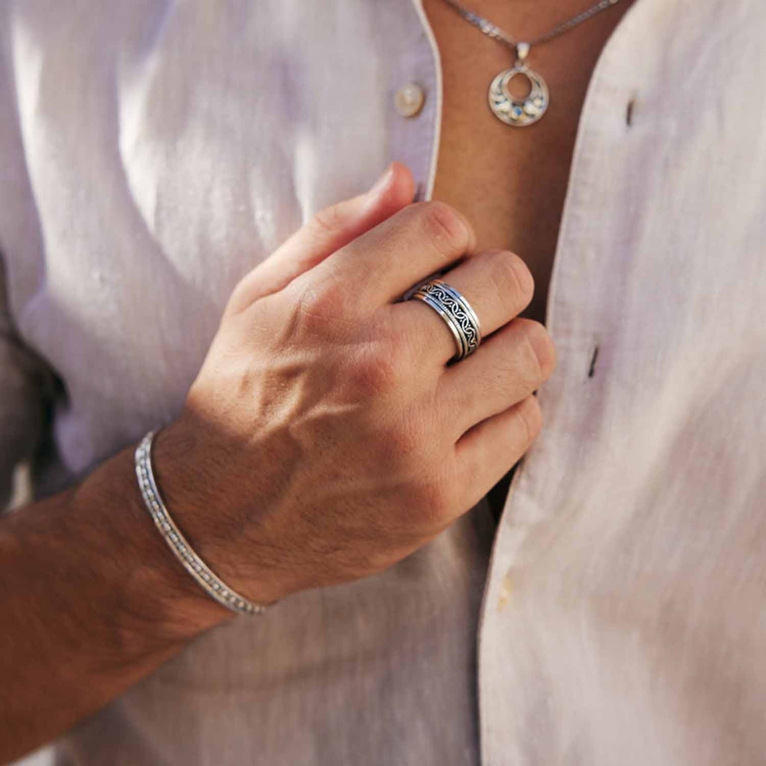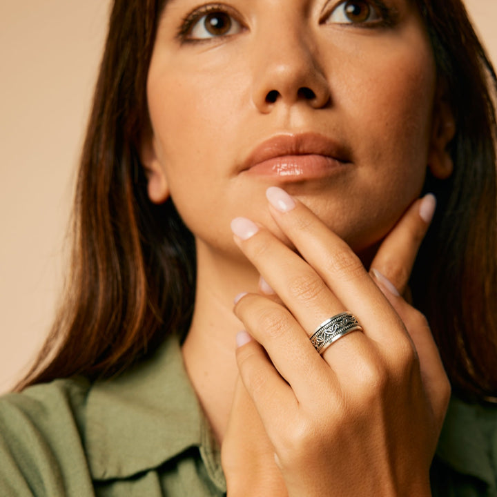 This Celtic Bravery Unisex Silver Spinning Ring by Charlotte’s Web Jewellery draws inspiration from Celtic knots, once symbols of bravery and eternity. Its detailed yet smooth design spins gently, functioning as a meditation aid while symbolising courage and resilience. Unisex and versatile, it makes a powerful piece for both men and women.