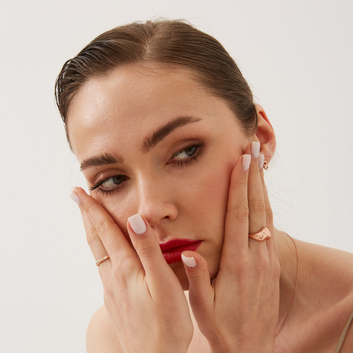 This highly flexible ring is cast in recycled 925 sterling silver and has a rose gold finish. It features a three-dimensional puffed heart.