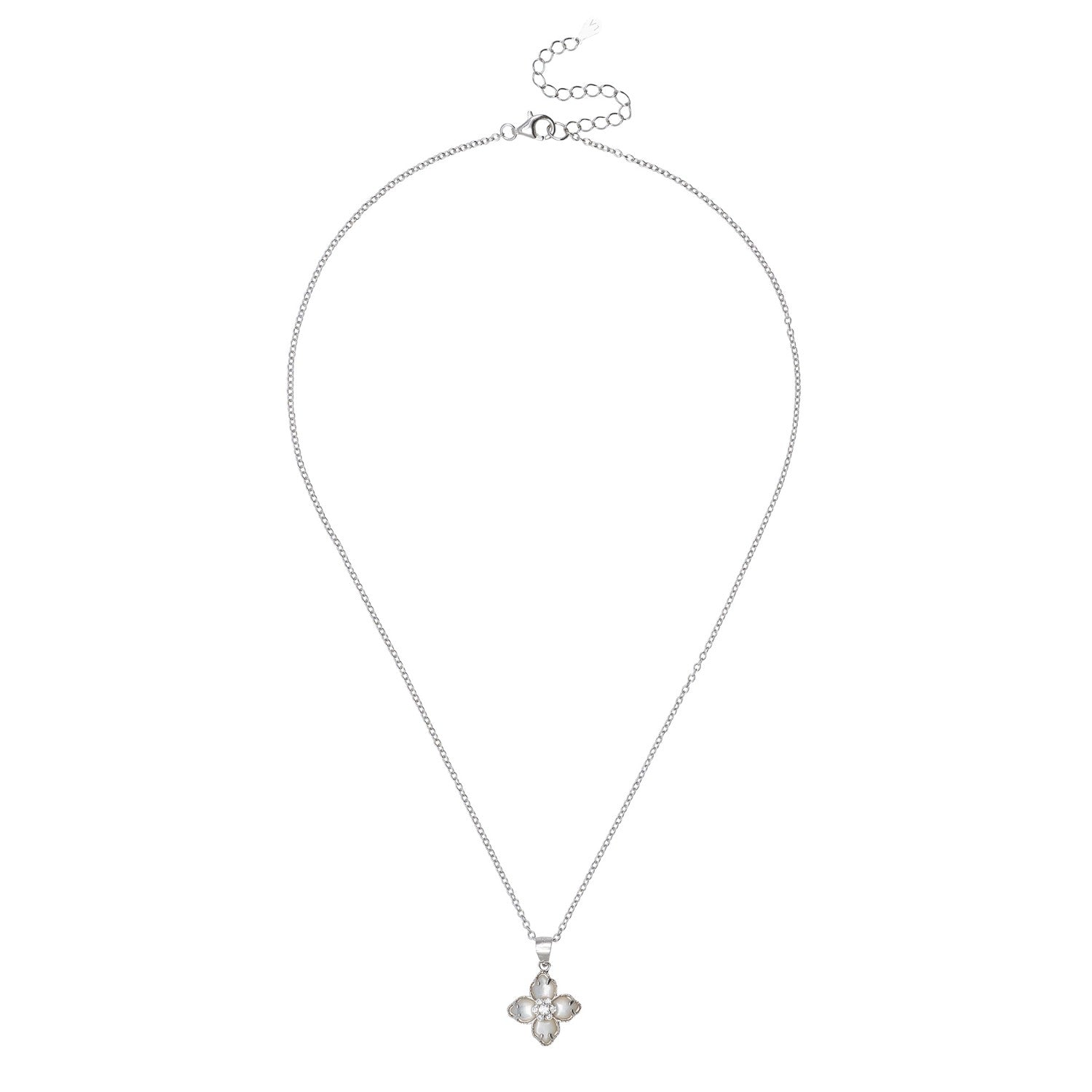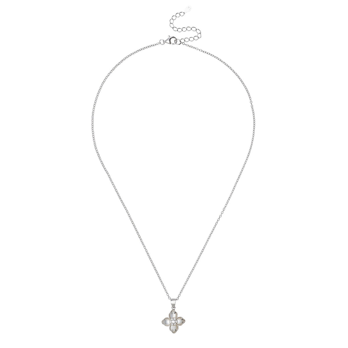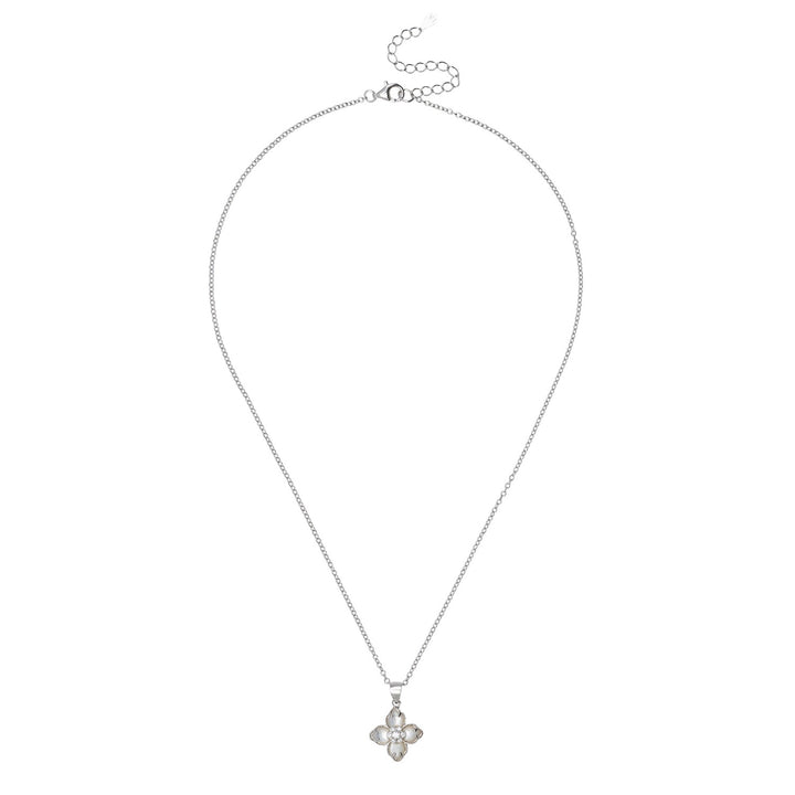 Flower Clover Mother Of Pearl Pendant Necklace Silver