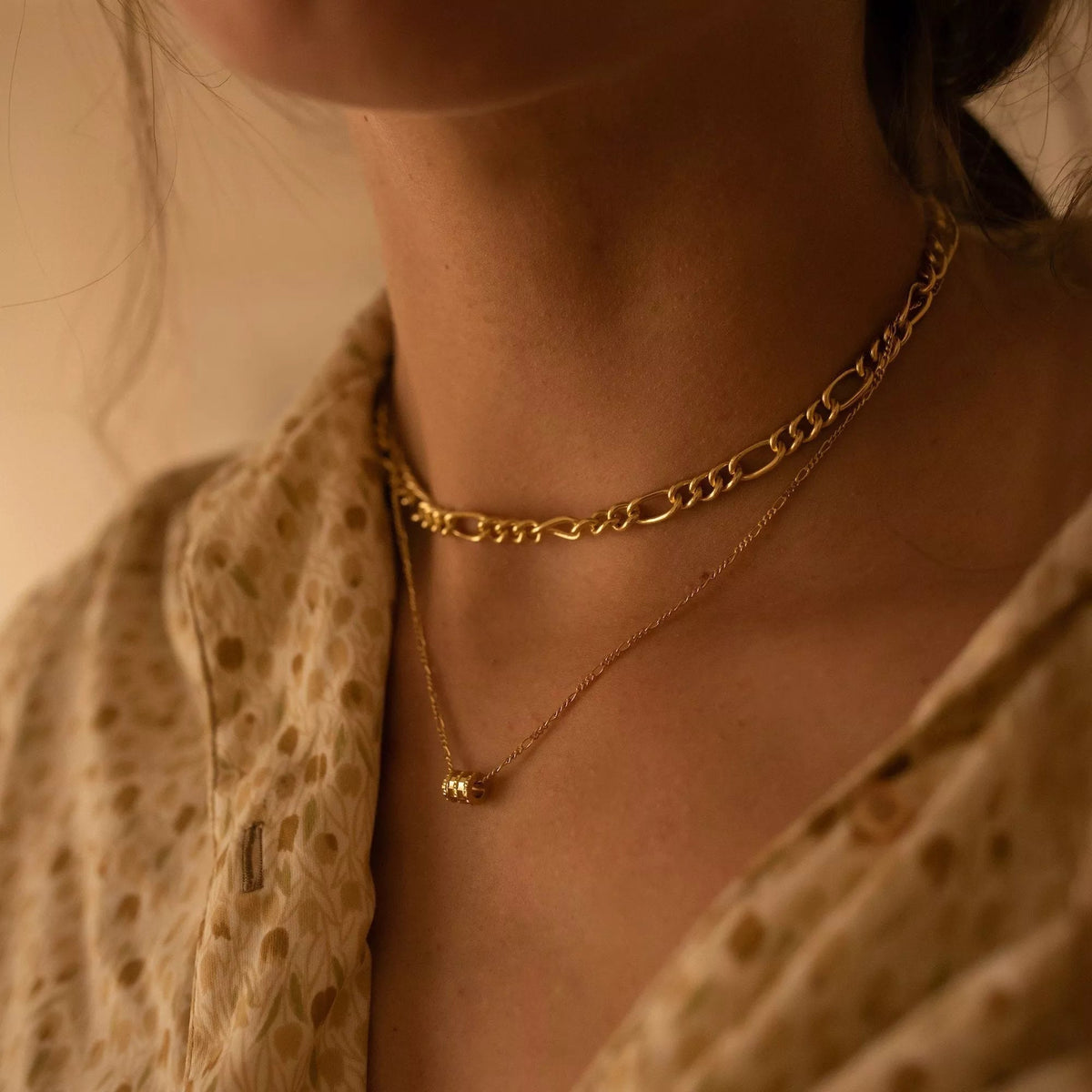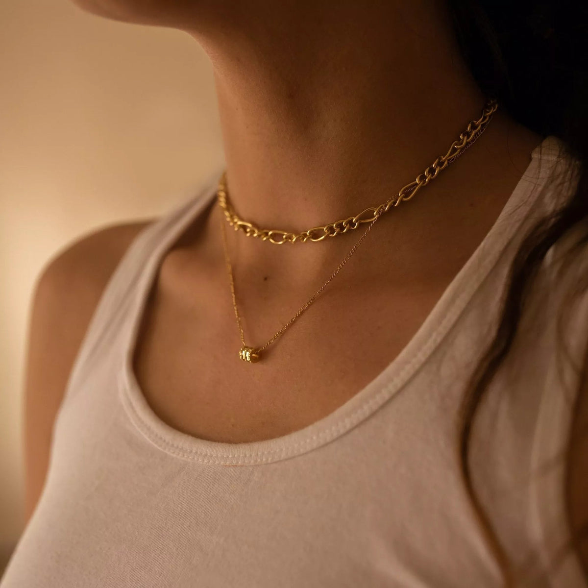 This Thick Gold Link Chain Necklace by Elk & Bloom adds bold sophistication to any look. With chunky links plated in 18k gold, it makes a statement alone or layered with other chains for a fashion-forward edge.