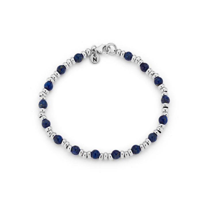 Crafted from sterling silver with genuine lapis lazuli gemstone beads. Adjustable bracelet length.