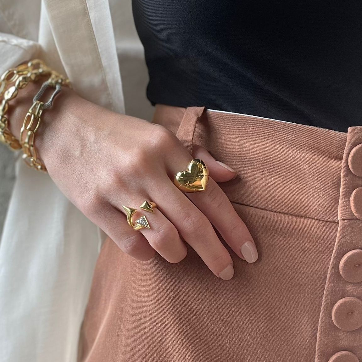 Sterling Silver Chunky Love Heart Signet Ring - Gold