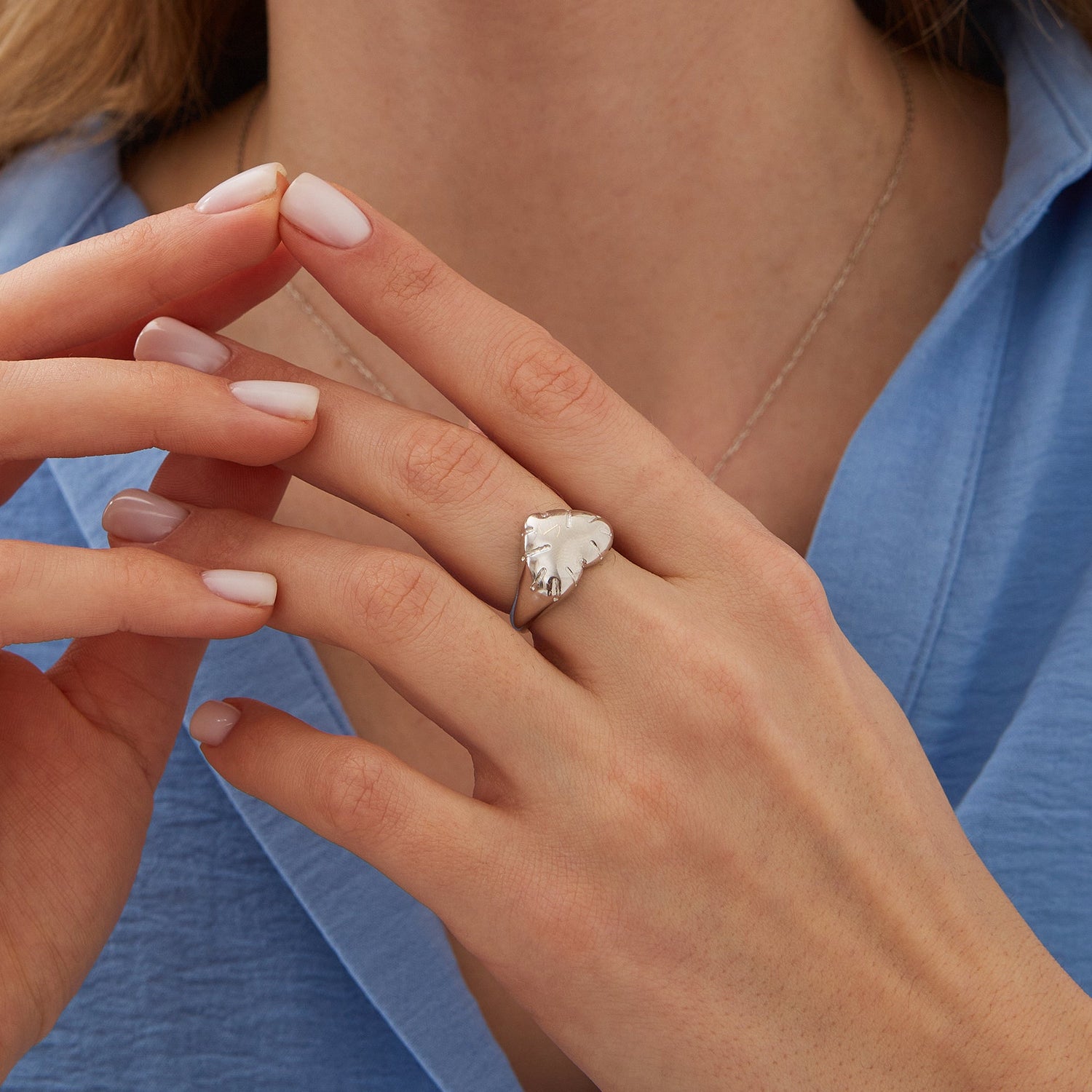 Chunky Love Heart Signet Sterling Silver Ring - Silver