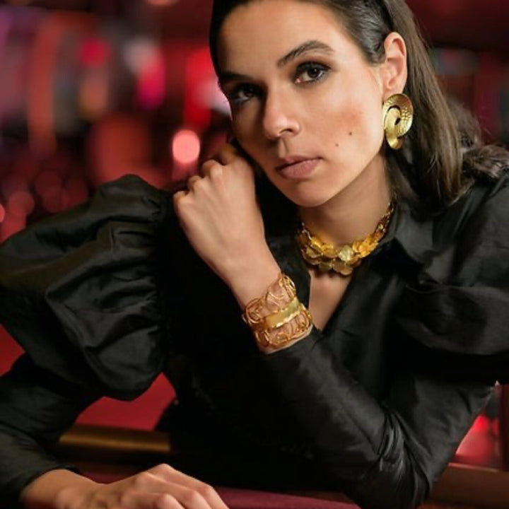 This cuff is made with 24k gold-plated wirework.