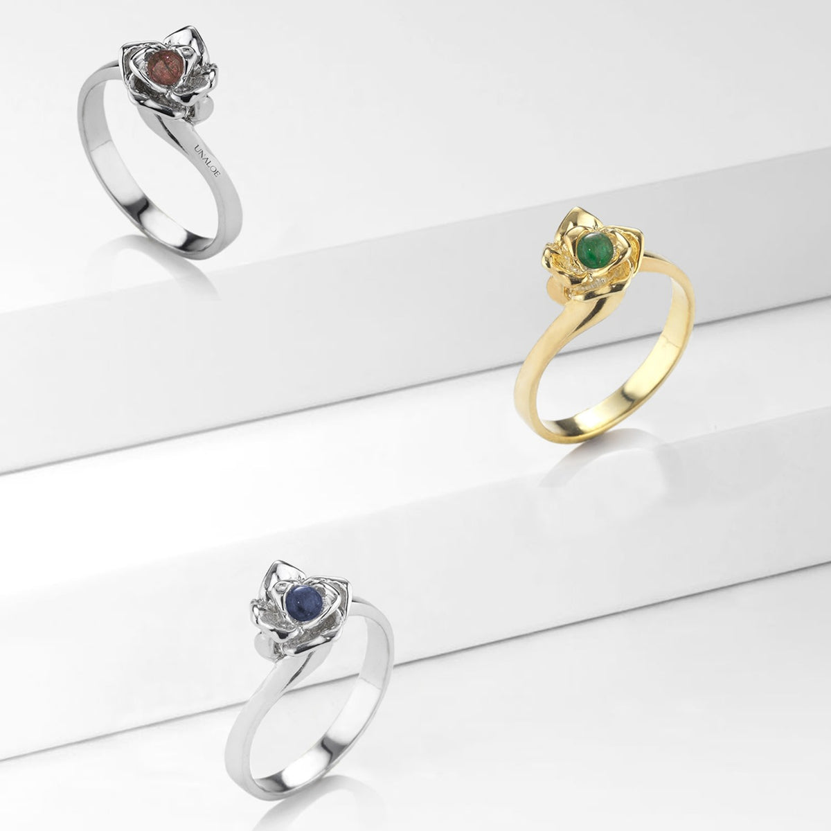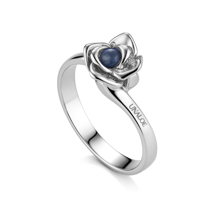 This Magnifica Ring in Sterling Silver with Sapphire by Unaloe is a piece of jewelry steeped in symbolism and artistry. The rose-inspired design embodies love’s universal language, expressed through fluid lines and artisanal craftsmanship. The natural sapphire, polished into a luminous cabochon, reveals its celestial asterism, a phenomenon long associated with destiny and spiritual awakening. A perfect harmony of elegance and meaning, the ring is ideal for standalone wear or for stacking with other treasures from the Unaloe Rocks collection. With every detail handcrafted in Italy, this ring invites the wearer to embrace wisdom, clarity, and the passion for life in a form both timeless and contemporary.