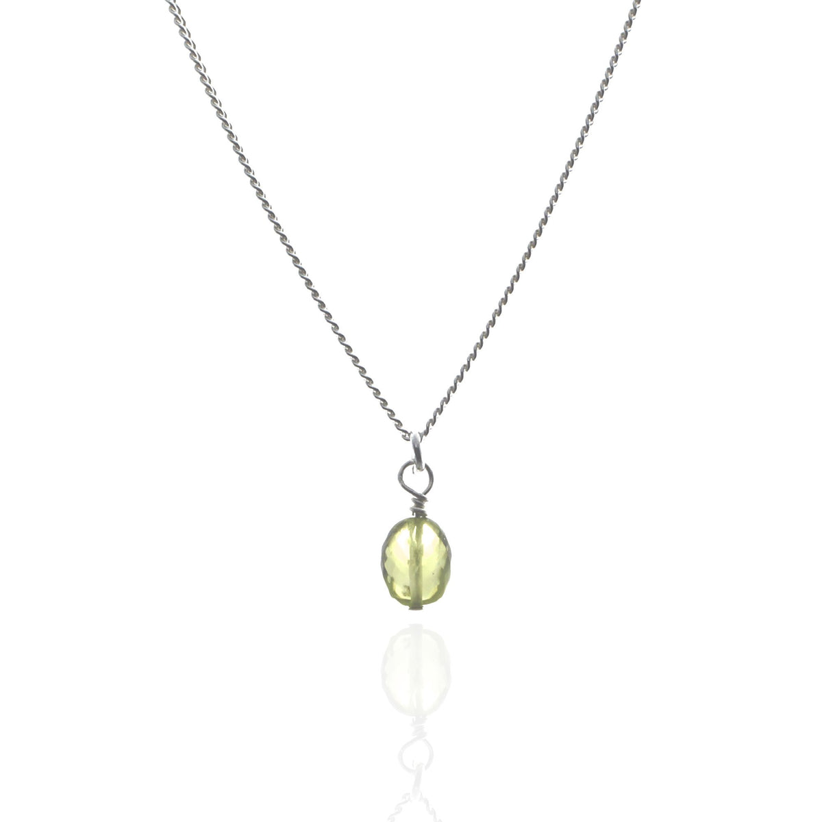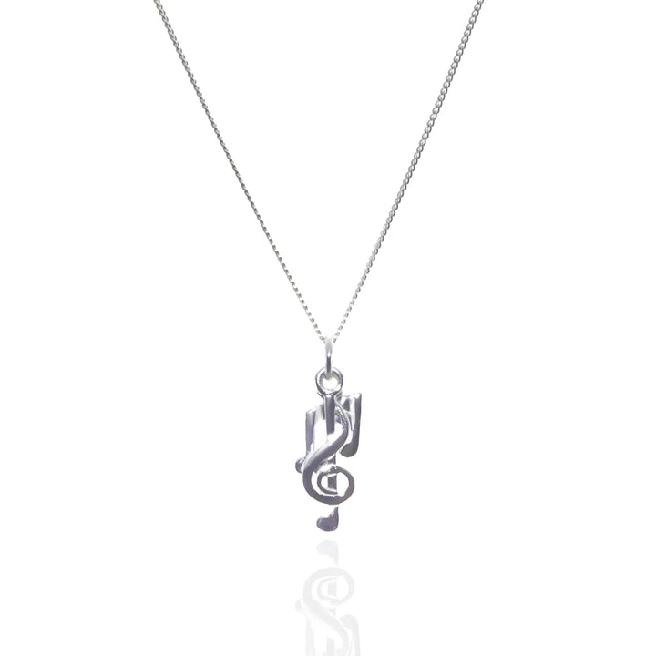 This multiway necklace is made from sterling silver and features a natural peridot gemstone and three music note pendants on a curb chain.