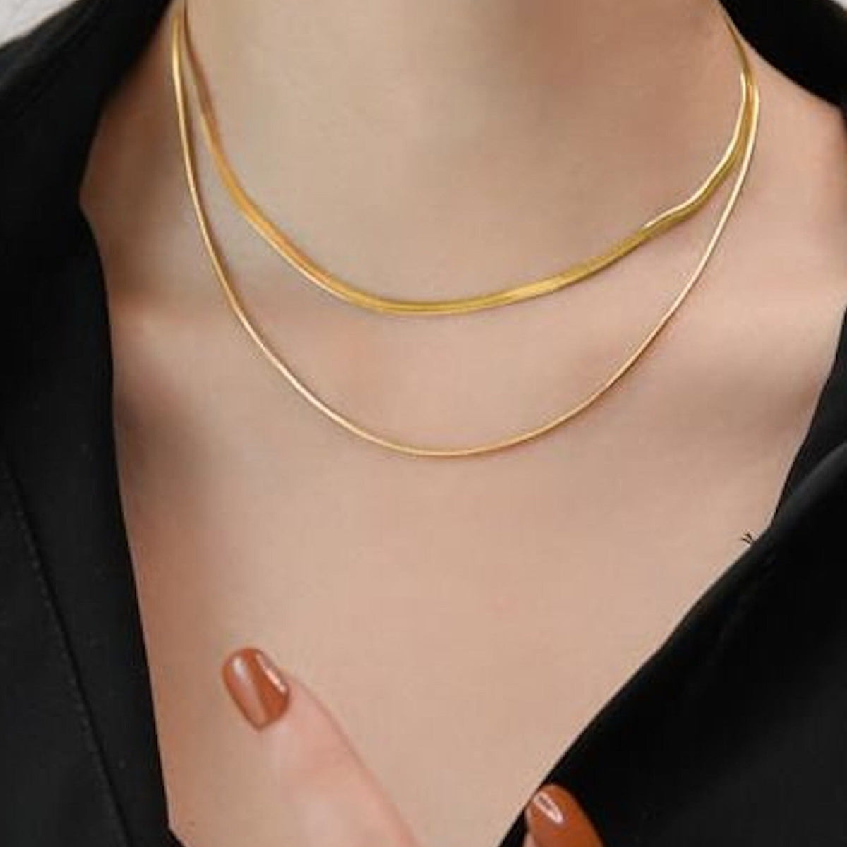 This Gold Double Snake Chain Choker by Elk & Bloom is a sleek accessory that adds a touch of modern sparkle to your neckline. The delicate double chain features a smooth snakeskin design, creating a refined yet edgy look. This choker is perfect for those who want a subtle statement piece that can be worn alone or layered with other necklaces. Its clean, minimalist aesthetic embodies a sense of effortless sophistication, making it a versatile staple for any style.