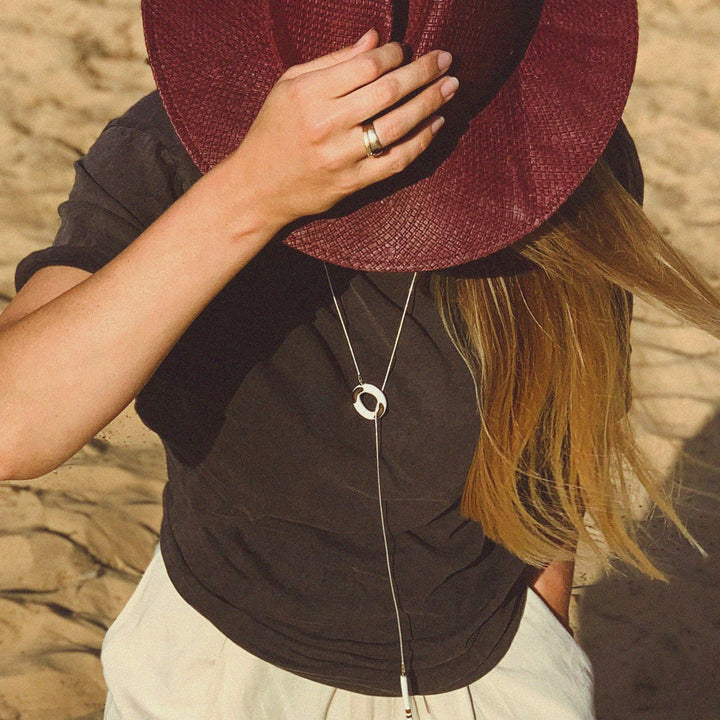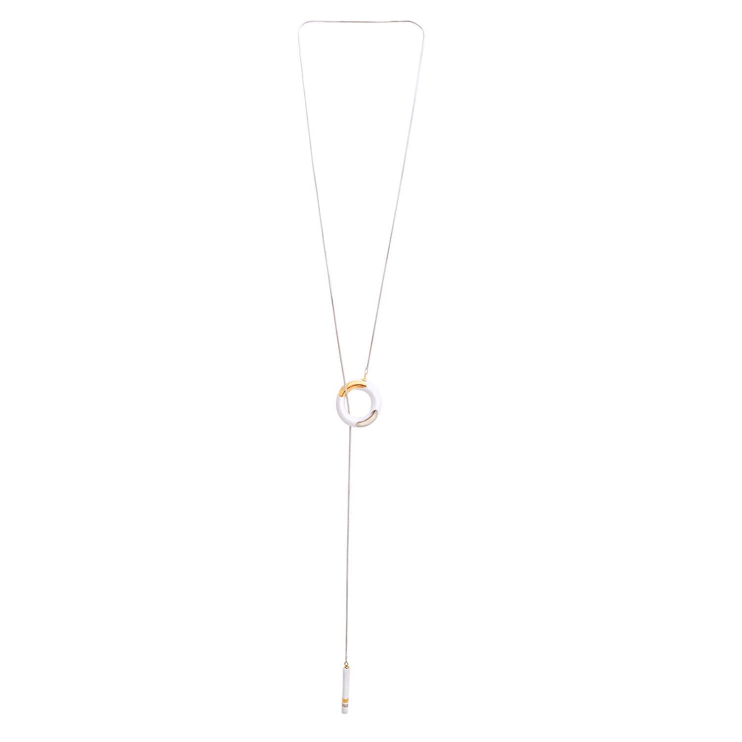 This Big Om Choker Mix Silver Necklace by Sculp is a hand-made porcelain choker with a powerful meaning. The name "OM" is considered a primordial sound of the universe, and this necklace symbolizes the "Circle of Life." This piece is not just an accessory, but a wearable expression of spirituality and creation.
