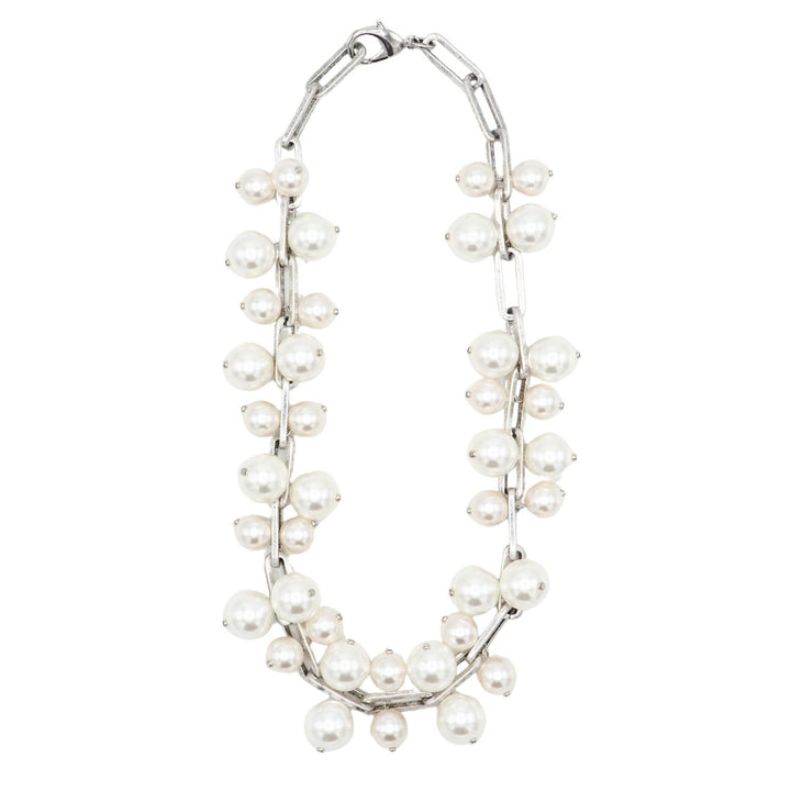 This Las Bodas Necklace - Silver by Sita Nevado is a bold, sculptural piece with natural energy. Made from oval brass rings linked together and accented with natural stone beads, it balances strength with organic detail. A weighty and impactful necklace designed to sit at mid-chest, making a confident statement.
