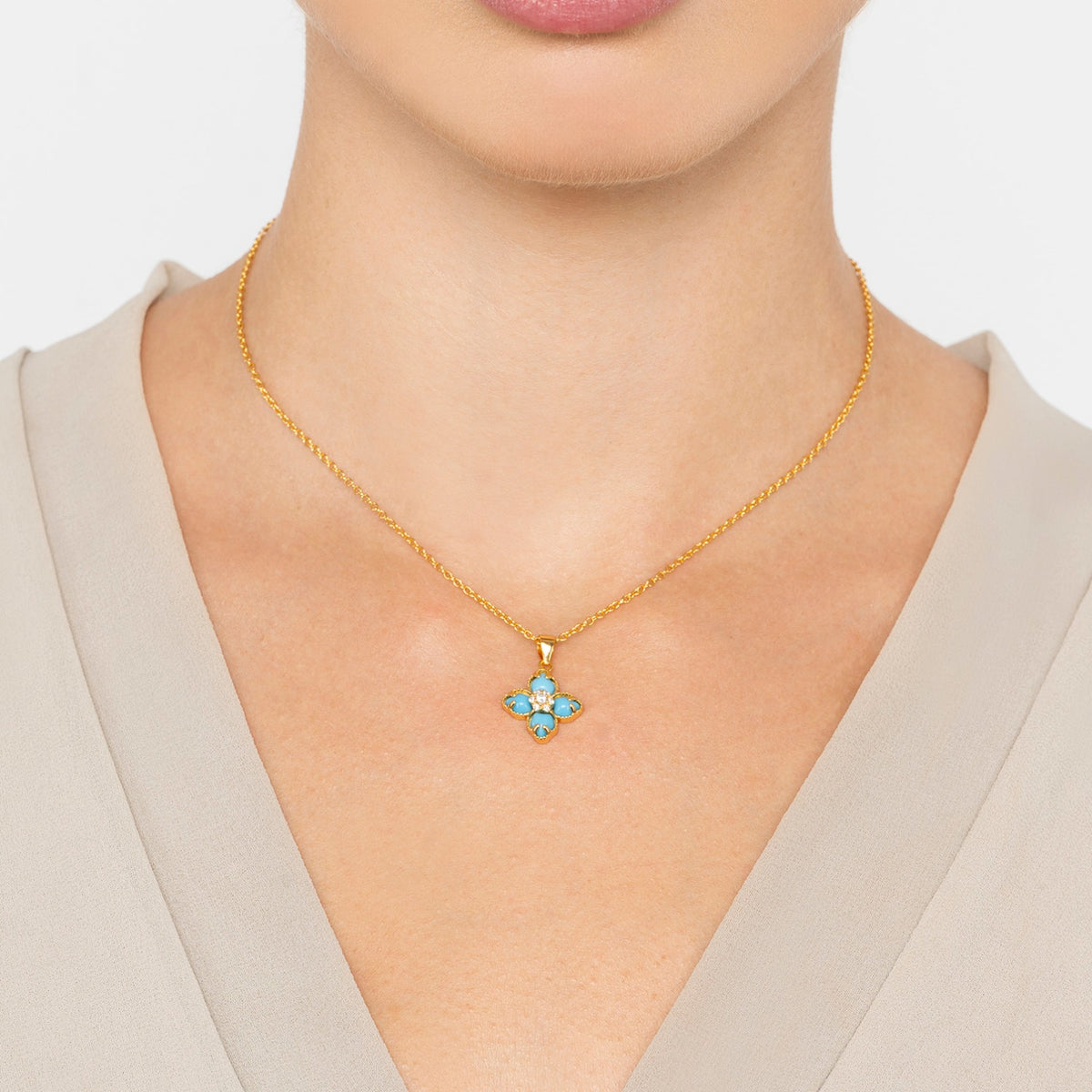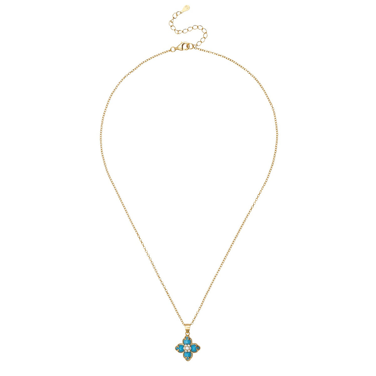 Flower Clover Turquoise Pendant Necklace Gold