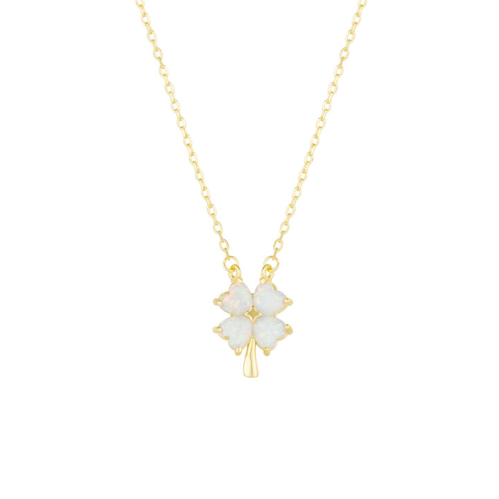 White Opal Four Leaf Clover Sterling Silver Necklace - Gold