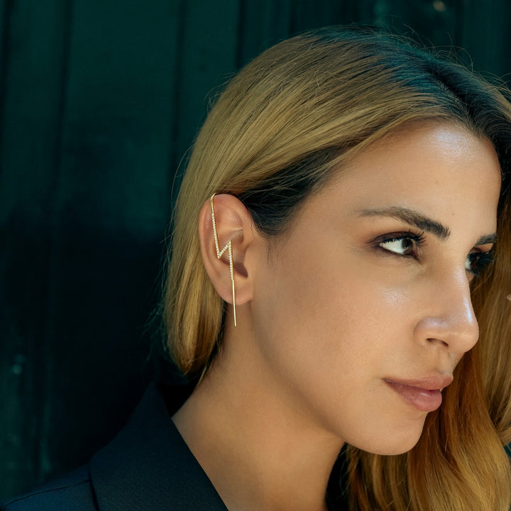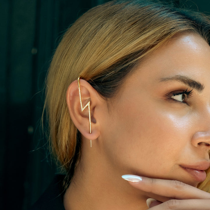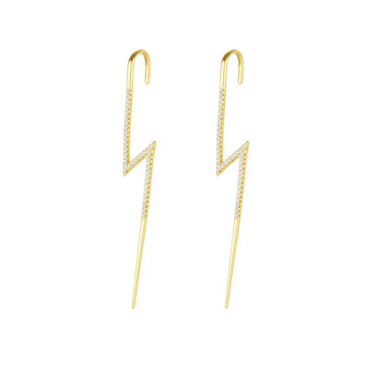 Sterling Silver Lightning Bolt Ear Crawler With Sparkling White Gemstones - Pair - Gold