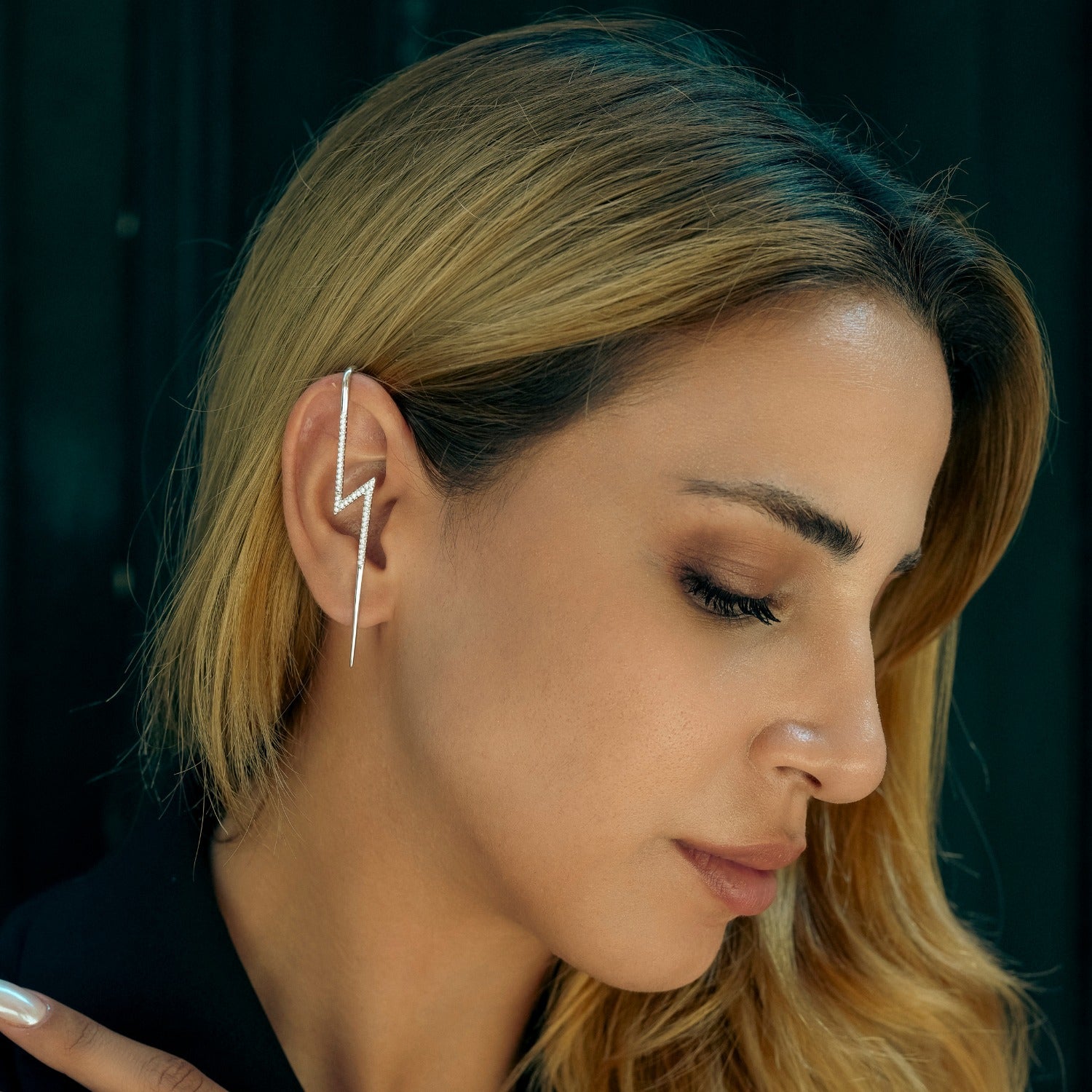 These Sterling Silver Lightning Bolt Ear Crawlers by Spero London radiate a fierce, edgy energy. Adorned with sparkling white gemstones, this pair is designed to light up any outfit, offering a unique touch of elegant rebellion. The ear crawler design follows the natural curve of the ear, creating a bold, linear statement. These stunning pieces are perfect for those who want to feel empowered and stylish.