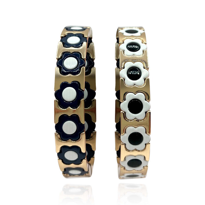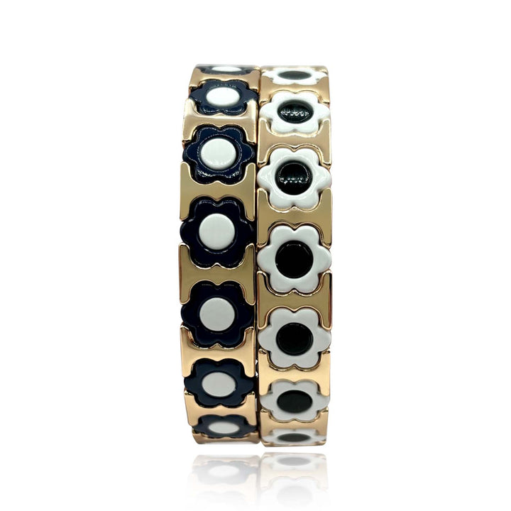 Black, White, Navy, And Gold Enamel Two-Strand Elasticized Bracelets