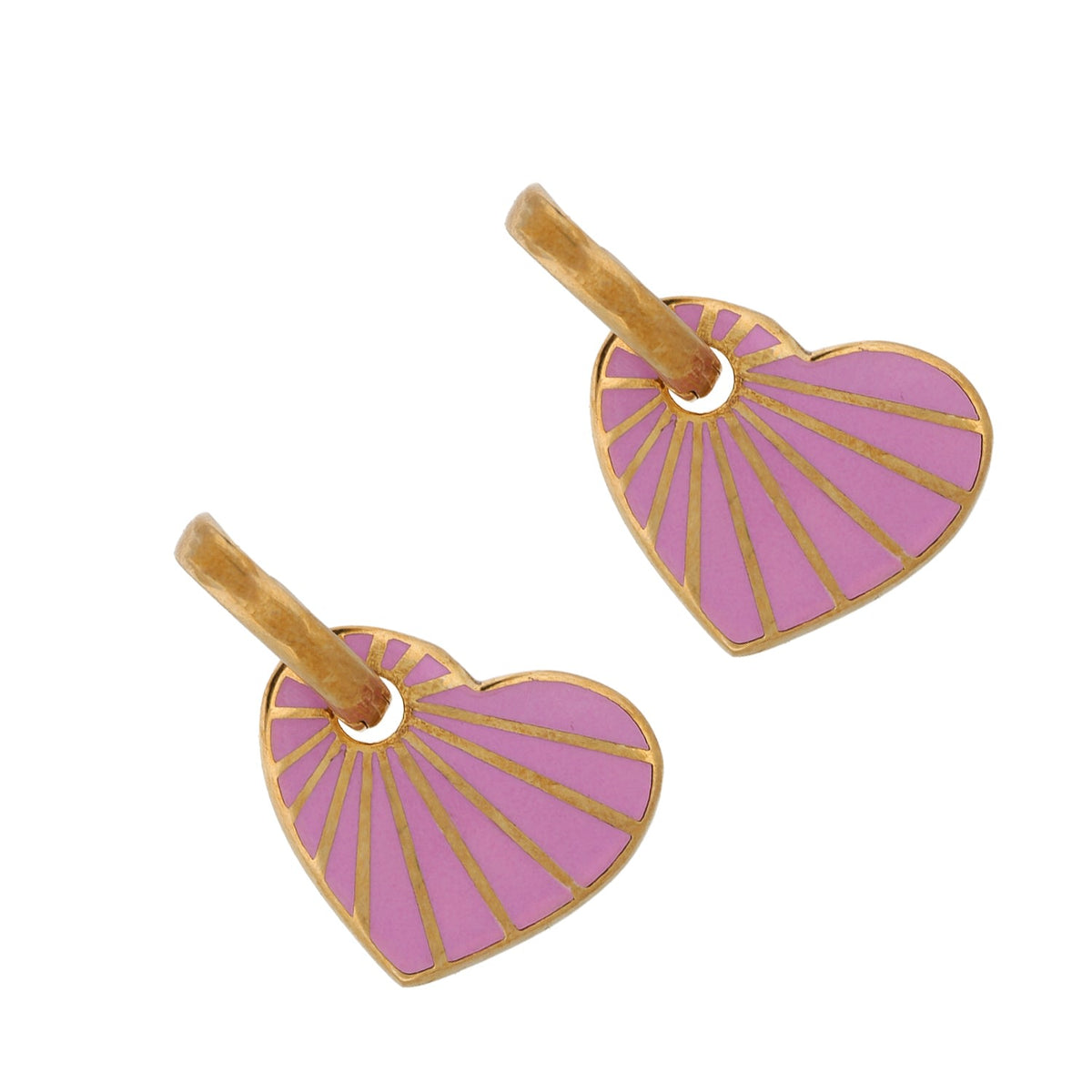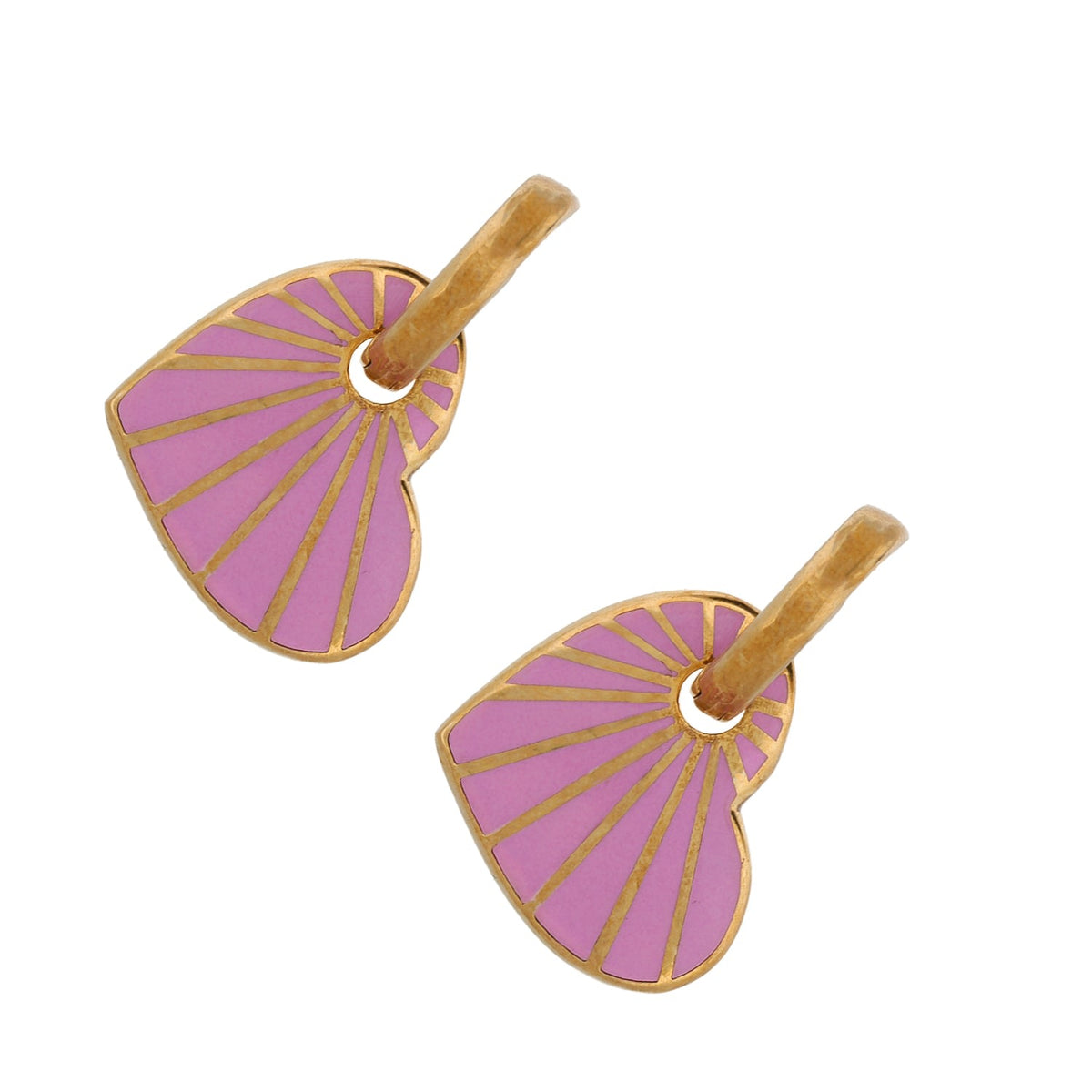 These heart earrings are made from 925 sterling silver with 18k gold vermeil and feature purple enamel.
