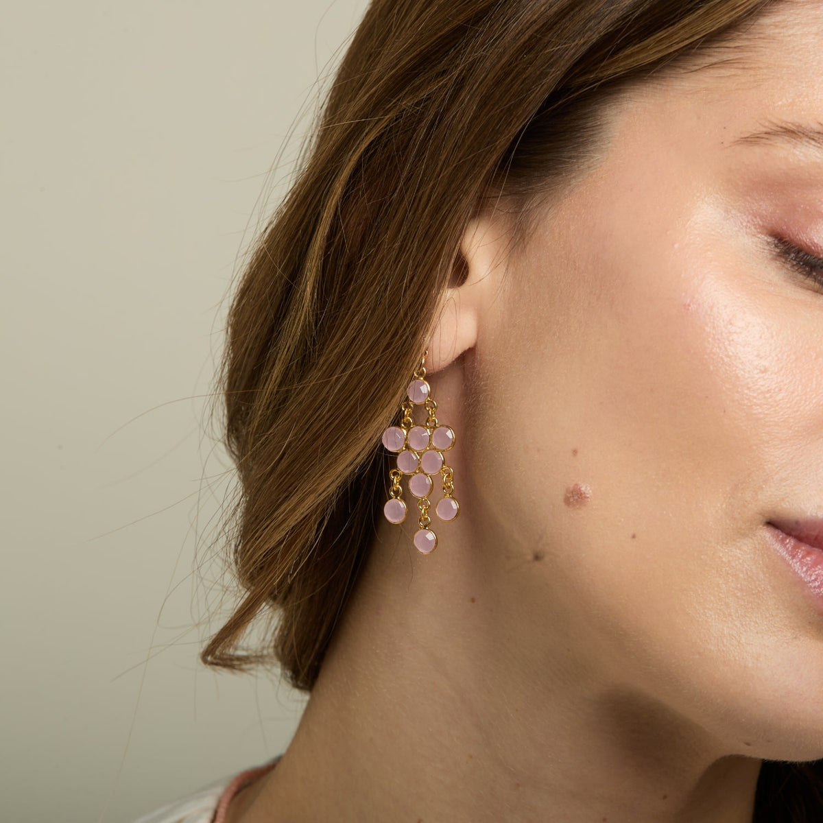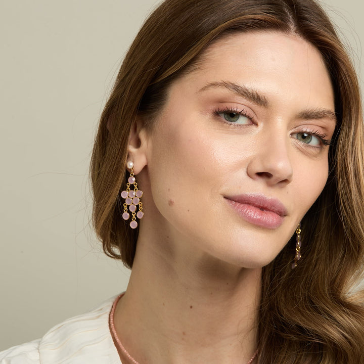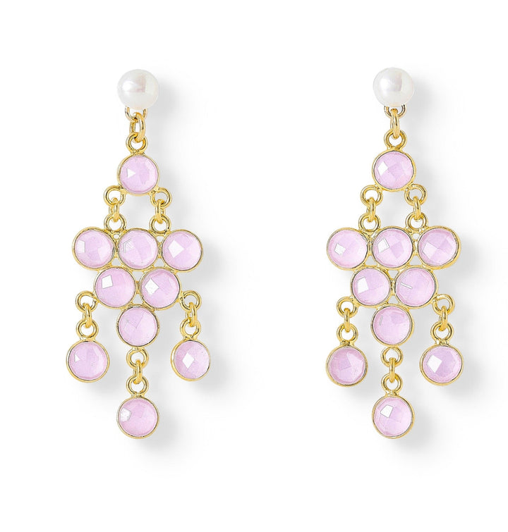 Clara Cultured Freshwater Pearl Earrings & Rose Quartz Chalcedony Chandelier Earrings