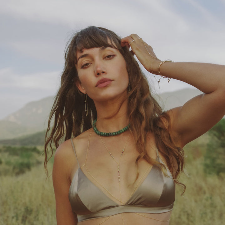 This necklace is handmade with genuine African Jade gemstones and a 14K gold-filled closure. The gold-filled material is water-resistant, tarnish-resistant, and hypoallergenic.
