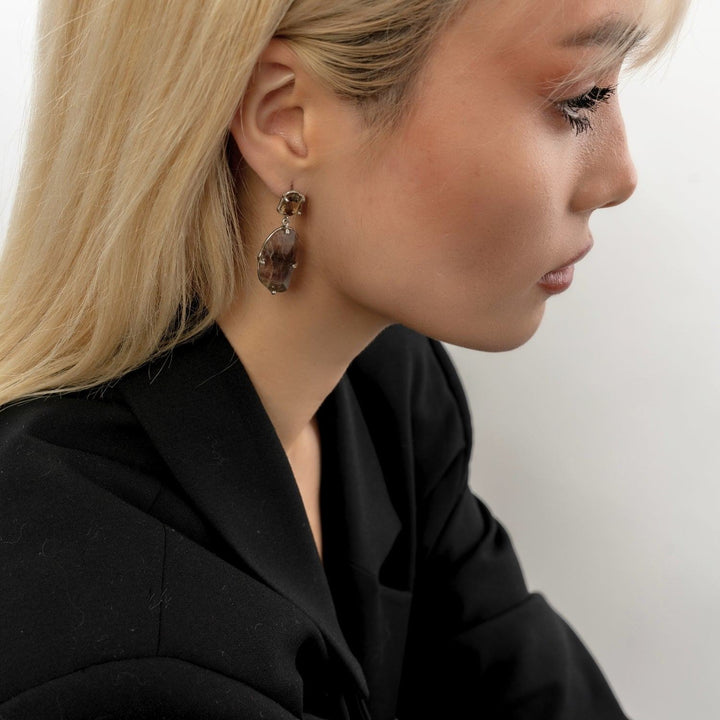 These Drop Purple Gemstone Silver Earrings by Mejoma are a luxurious and unique statement piece. They feature a natural irregular gemstone, celebrating imperfections and adding a distinctive, one-of-a-kind touch to any outfit. The elegant design and exquisite color of the purple gemstone are sure to make a bold statement, symbolizing a connection to the raw, untamed beauty of nature and the celebration of individuality.