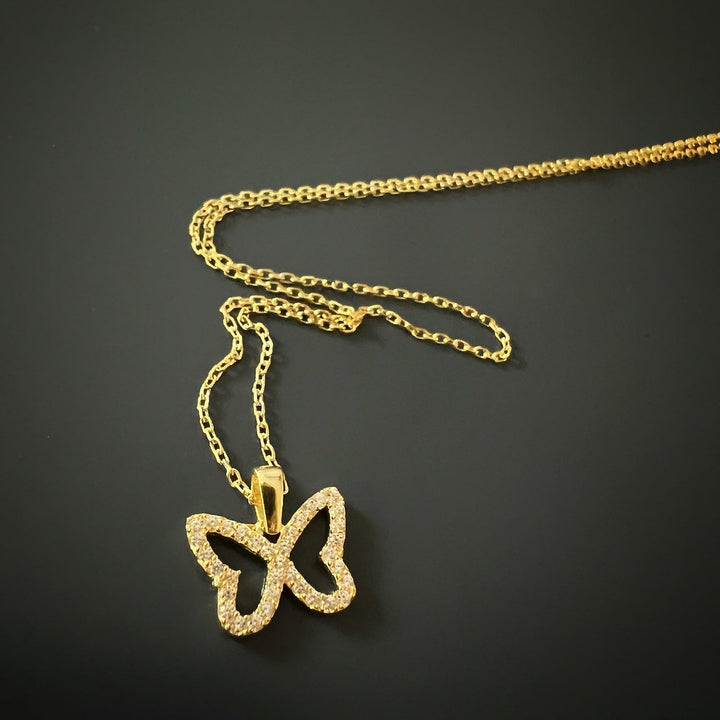 Gold Sparkly Butterfly Necklace - Gold