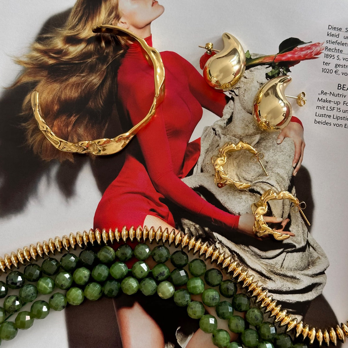 This Cuff Bracelet Caroline by Smilla Brav offers minimalistic luxury for everyday wear. Made from recycled stainless steel and dipped into a gold bath, it's a fresh and elegant accessory that can glam up any outfit. Its unique design and high-quality finish make it a versatile piece that's perfect for adding a touch of sophistication to your daily life.