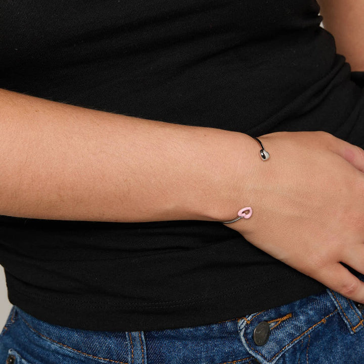 This Cometa Enamel Heart Bangle - Recycled Silver by Dolcetto Designs is a beautiful and cosmic accessory. It is designed to be stacked with all your favorite bracelets and features a subtle hand-painted enamel heart to add a touch of cosmic love to your style. Made from recycled silver, this bangle celebrates the unexpected moments of beauty seen in our night sky, making it a unique and meaningful addition to your collection.