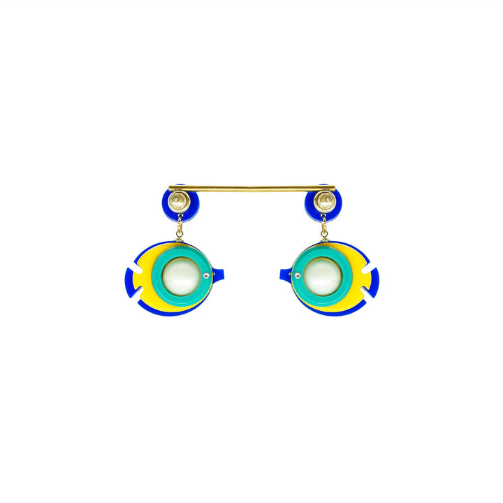 These Handmade Acrylic Earrings Tang Fish Blue by Gissa Bicalho are a playful and artistic statement piece, inspired by the vibrant life of the sea. Meticulously handcrafted by Brazilian artisans, these pendant-style earrings feature a whimsical "Tang Fish" design in beautiful blue acrylic. Adorned with sparkling glass rhinestones and lustrous shell pearls, they bring a sense of fun and unique charm to your look. The handmade process ensures each piece has its own subtle variations, making them a truly one-of-a-kind accessory.