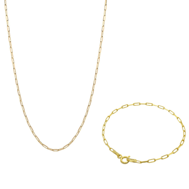 Rectangular Sterling Silver Chain Bracelet & Necklace Set - Gold