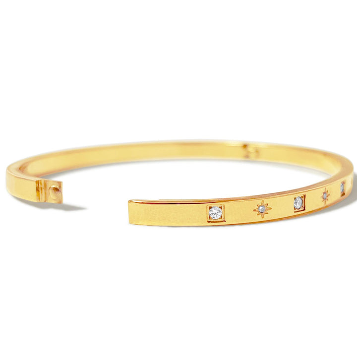 The Universe Cuff by Hzmer Jewellery is a celestial fusion of elegance and modern artistry. This exquisite, waterproof cuff is designed to shine through every moment, capturing the vast allure of the cosmos with its sleek, contemporary design. It balances sophistication with resilience, making it a powerful statement piece that can be treasured for years to come. This cuff embodies timeless beauty with a modern edge, perfect for everyday wear and special occasions alike.