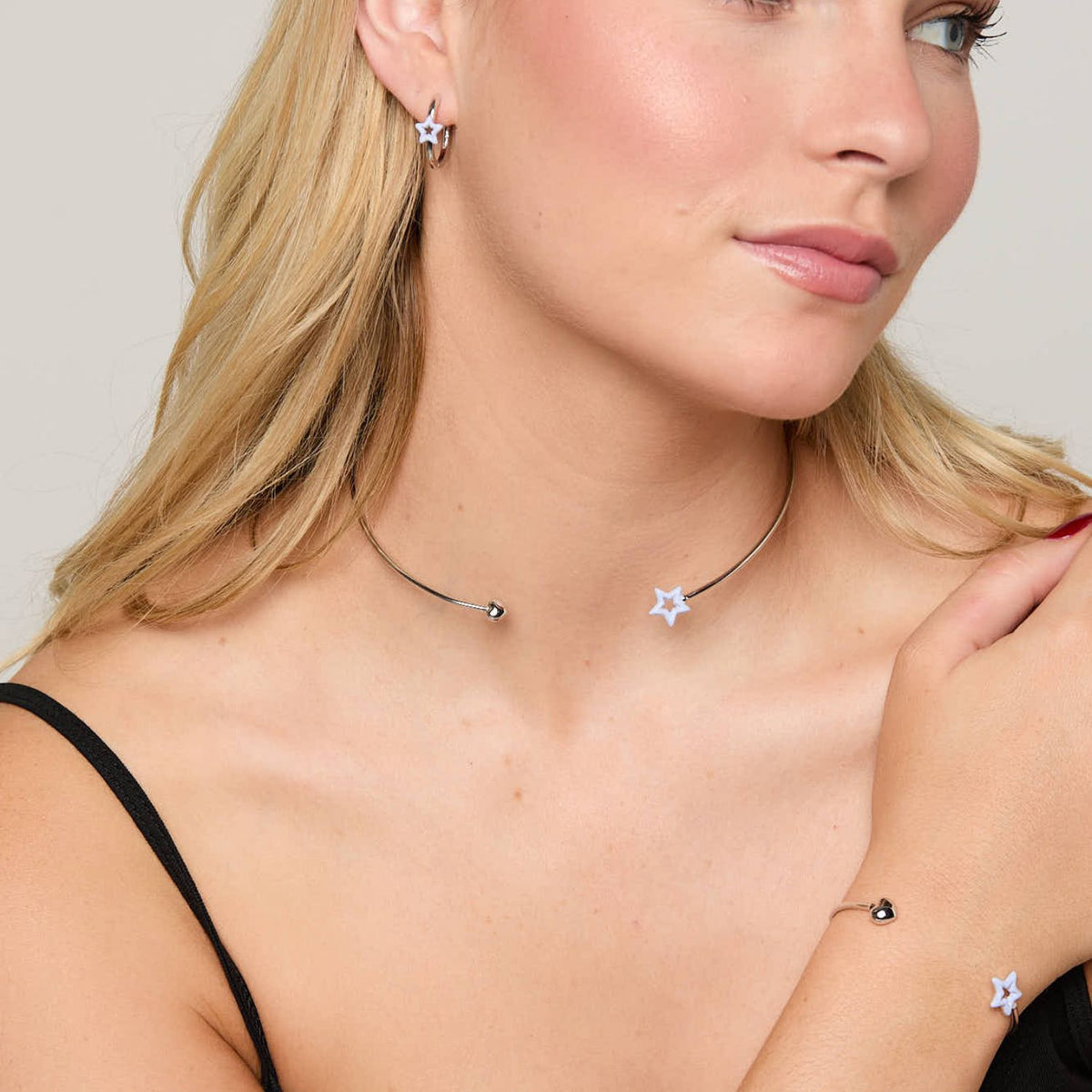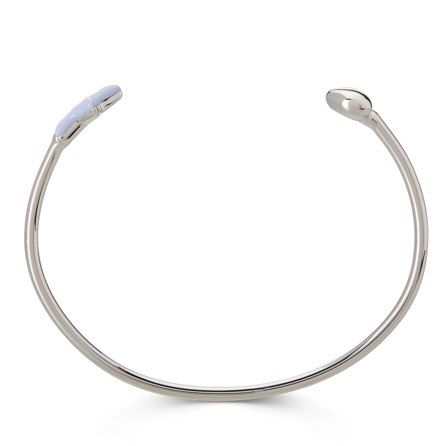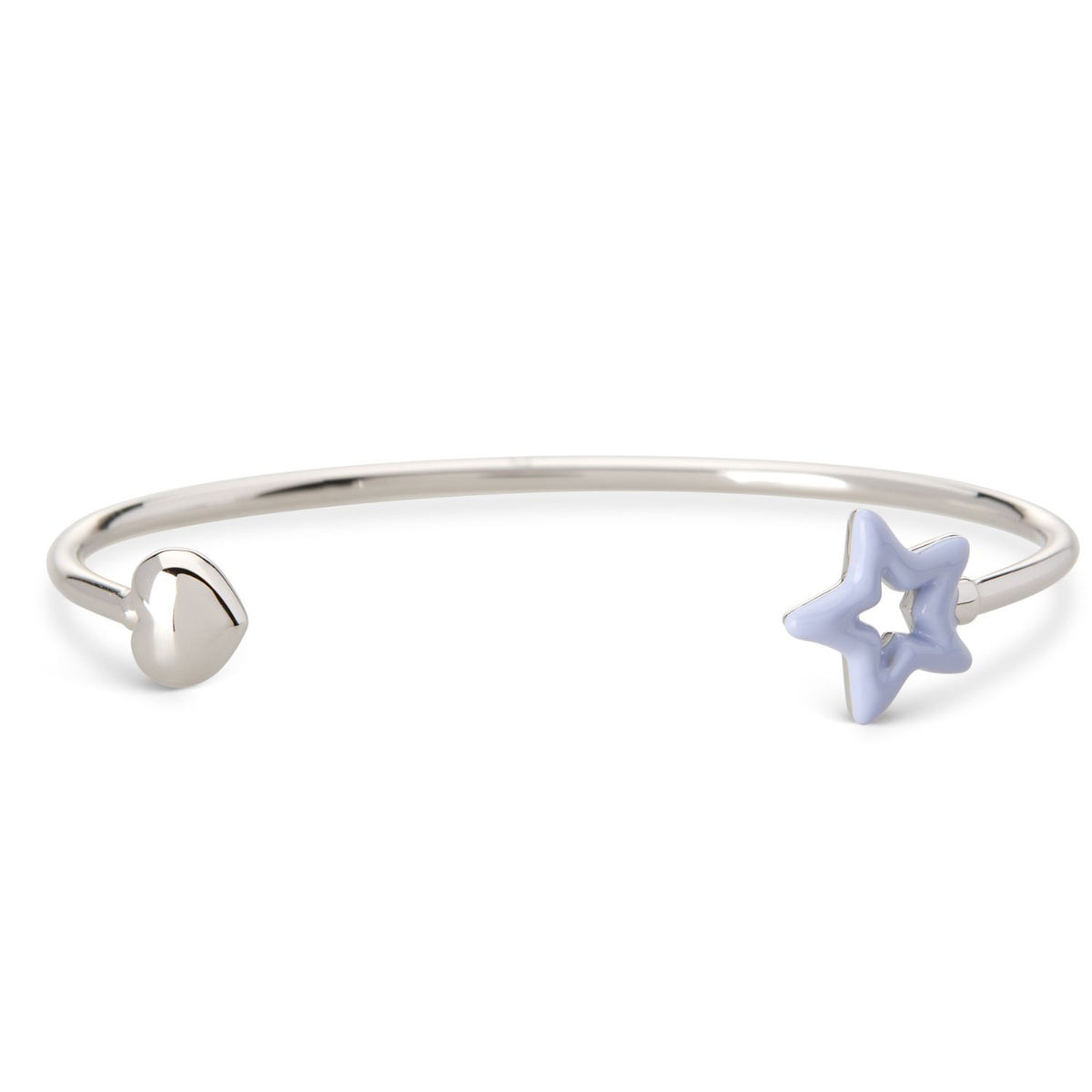 A bangle crafted from recycled silver with a subtle, hand-painted enamel star. Remember to remove it before showering, sleeping, or exercising to maintain its condition.
