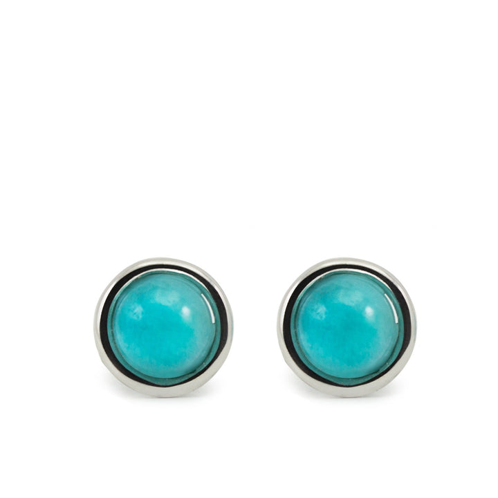 Handmade in Italy from solid sterling silver. Features 8 mm amazonite cabochon stones. Nickel-free and EU compliant.