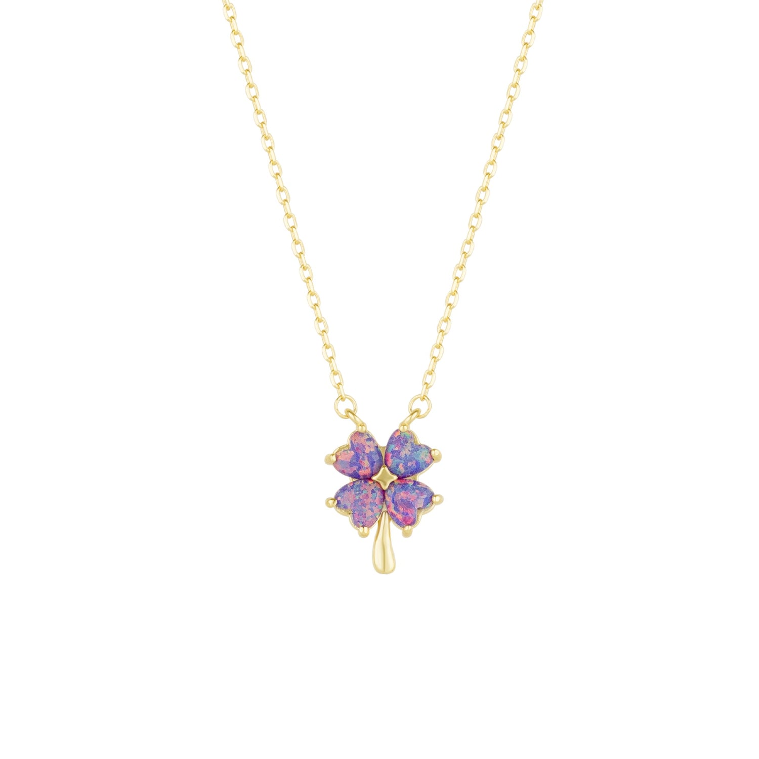 Pink & Purple Opal Four Leaf Clover Sterling Silver Necklace