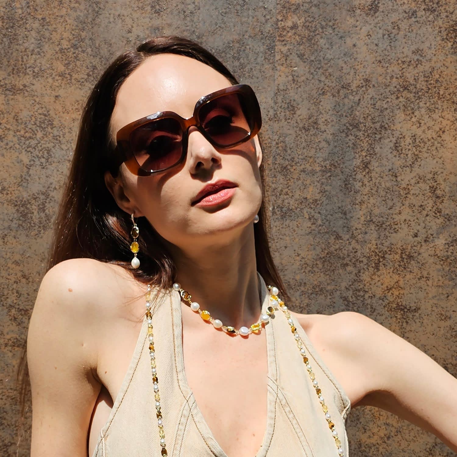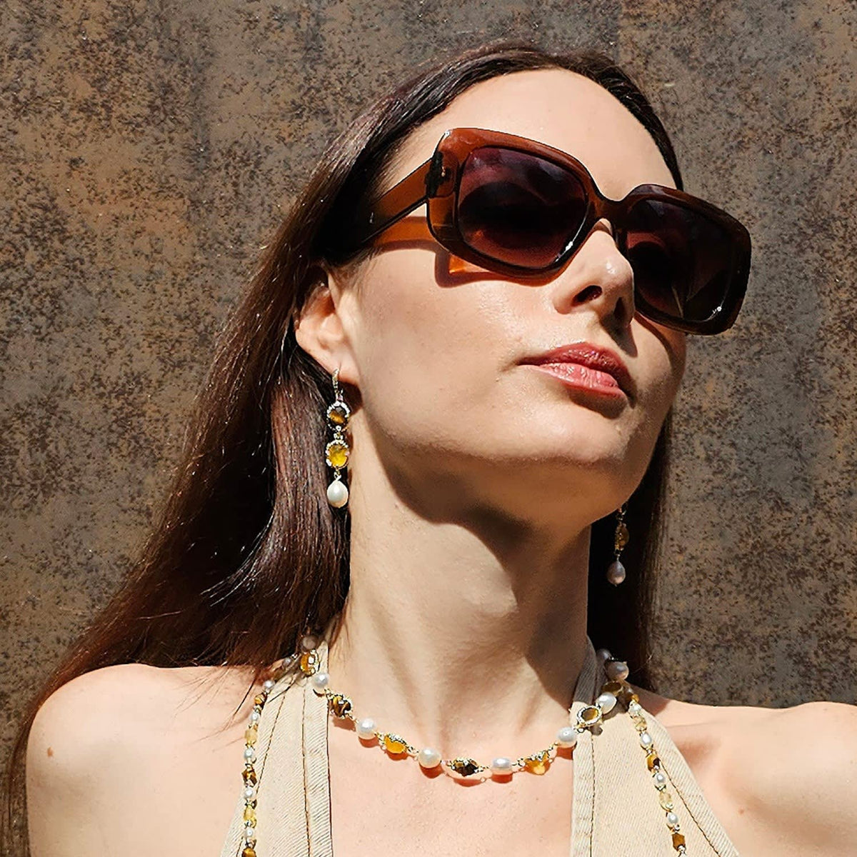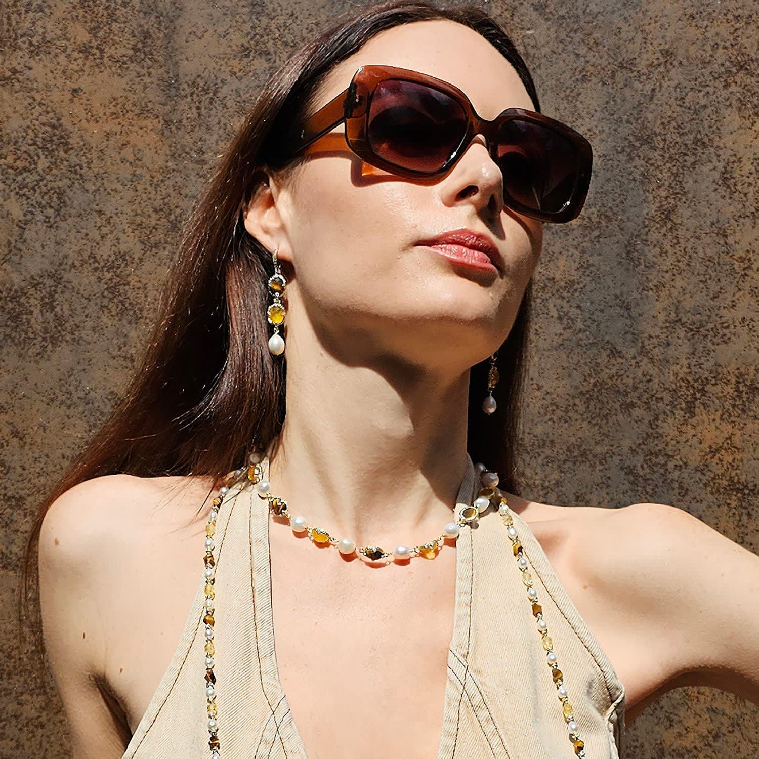 These Tiger Eye and Yellow Quartz Dangle Earrings by Farra are a captivating blend of earthy tones and sunny brightness. The rich brown tiger eye provides a grounding effect, while the vibrant yellow quartz adds a touch of cheer. Completed with a lustrous freshwater pearl drop, these earrings exude a timeless elegance and sophisticated femininity. Their lightweight design ensures comfortable wear, while the secure hook closure offers peace of mind for both casual and special occasions.