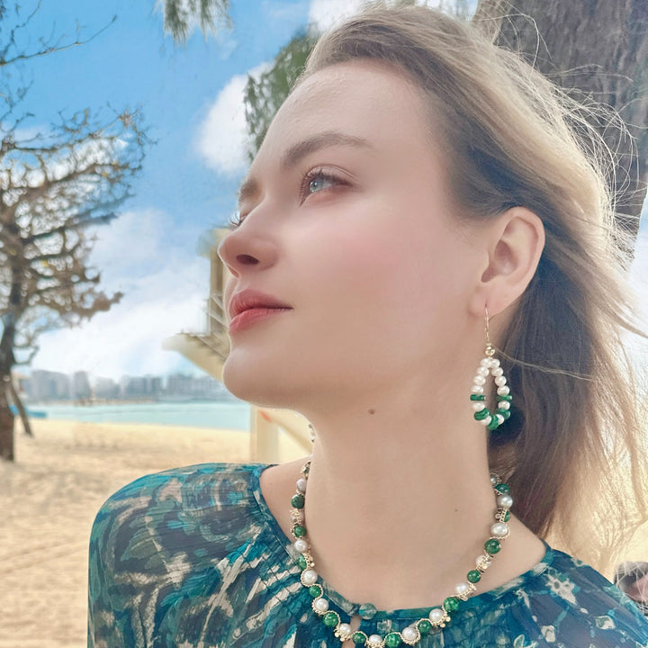 Handcrafted Teardrop Freshwater Pearls With Malachite Earrings
