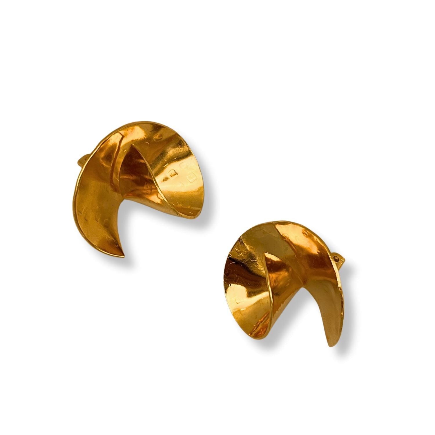 These Espiral Clip Earrings by Jaredjamin are a sculptural masterpiece, drawing inspiration from the natural curls of a shell while incorporating a modern architectural spiral design. Finished with our signature 18K gold plating, they have a luxurious and inviting texture. At 2.5 inches, they are the perfect size to make a statement without being overpowering, ideal for both special occasions and everyday wear. These earrings symbolize the harmonious blend of natural beauty and refined design, celebrating a sophisticated and artistic aesthetic.