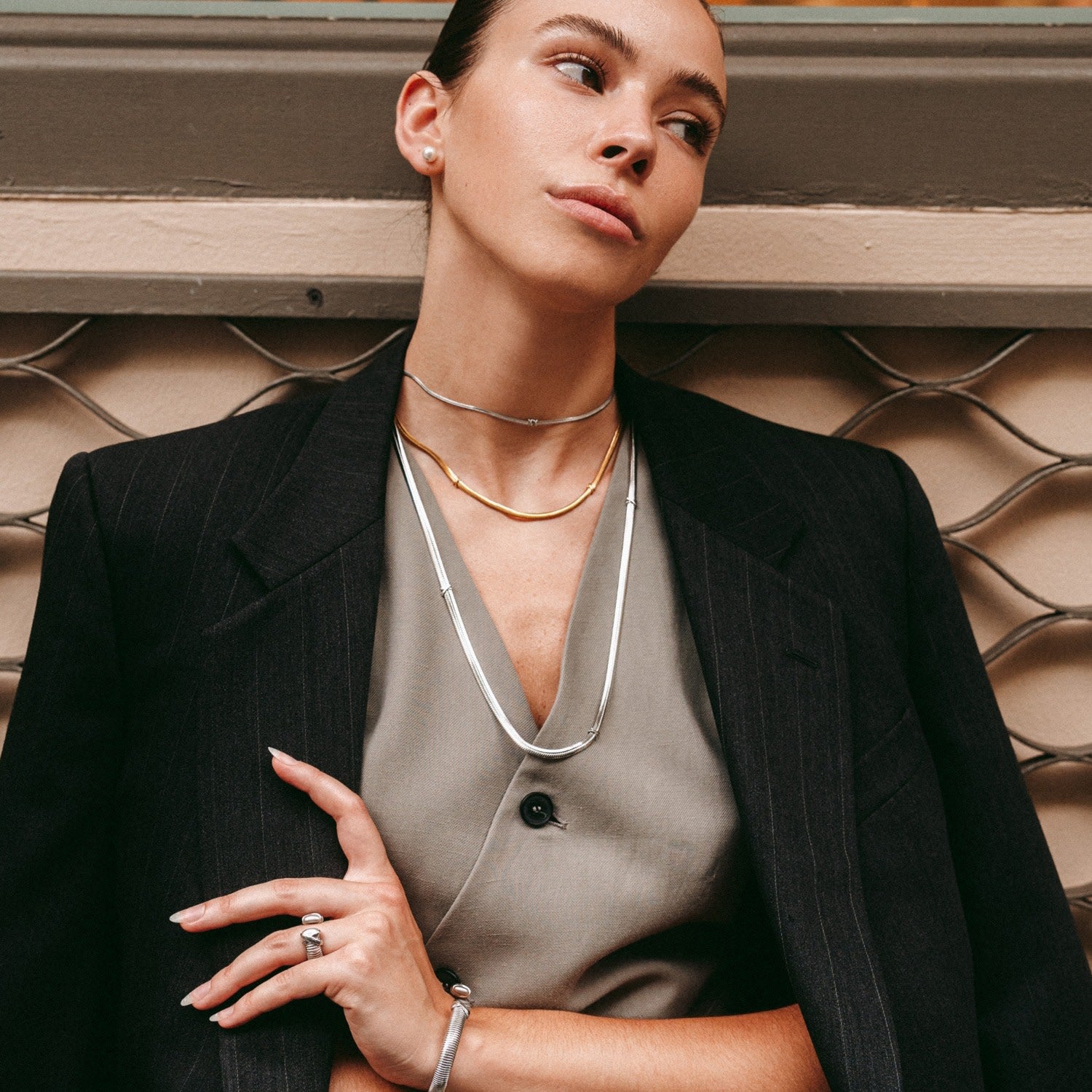 This Minimalism Boa Snake Long Chain Necklace by Me30 is a sleek expression of mystery and resilience. Decorated with an “X” motif symbolising an unknown soul code, it reflects the strength to face life’s surprises with grace. Its clasp-free, minimalist design ensures effortless wear, while its long length makes it perfect for layering or wearing solo. A timeless and versatile piece for modern, conscious styling.