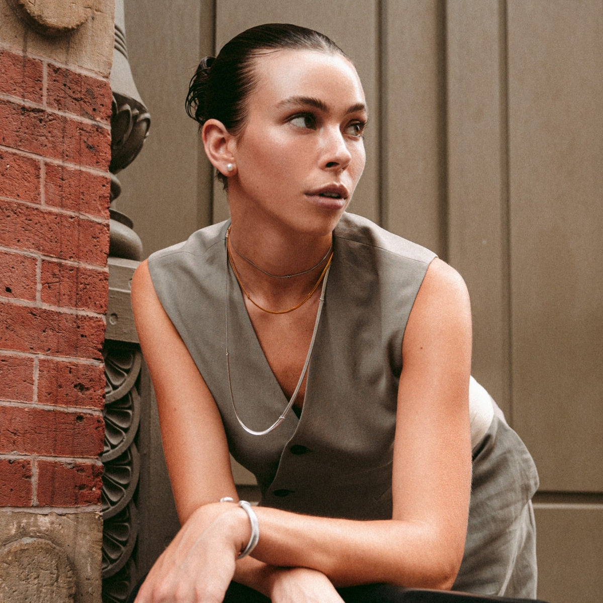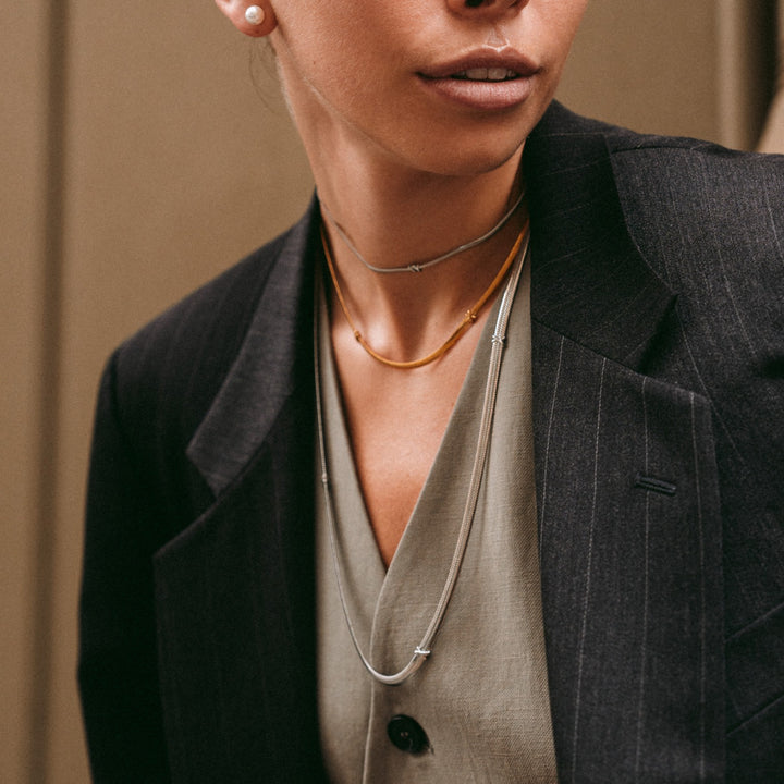 Crafted in hypoallergenic 316L stainless steel with durable PVD 18k gold plating. Clasp-free design. Measures approx. 70cm (27"). Sustainable and environmentally friendly production.