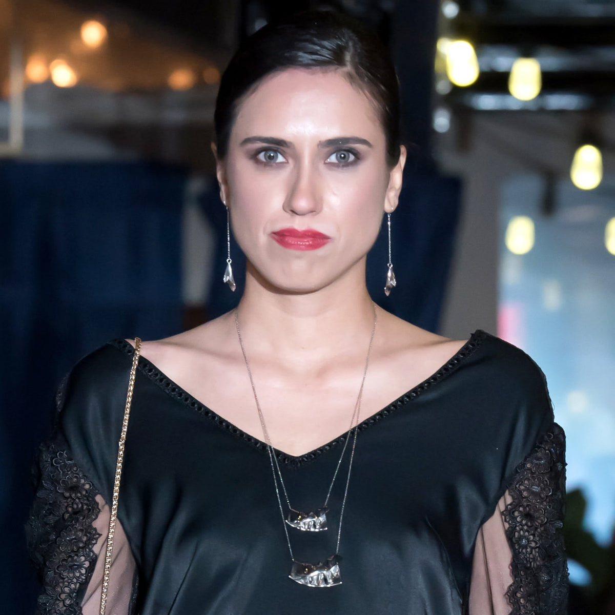 These earrings are crafted from palladium and rhodium-plated brass.