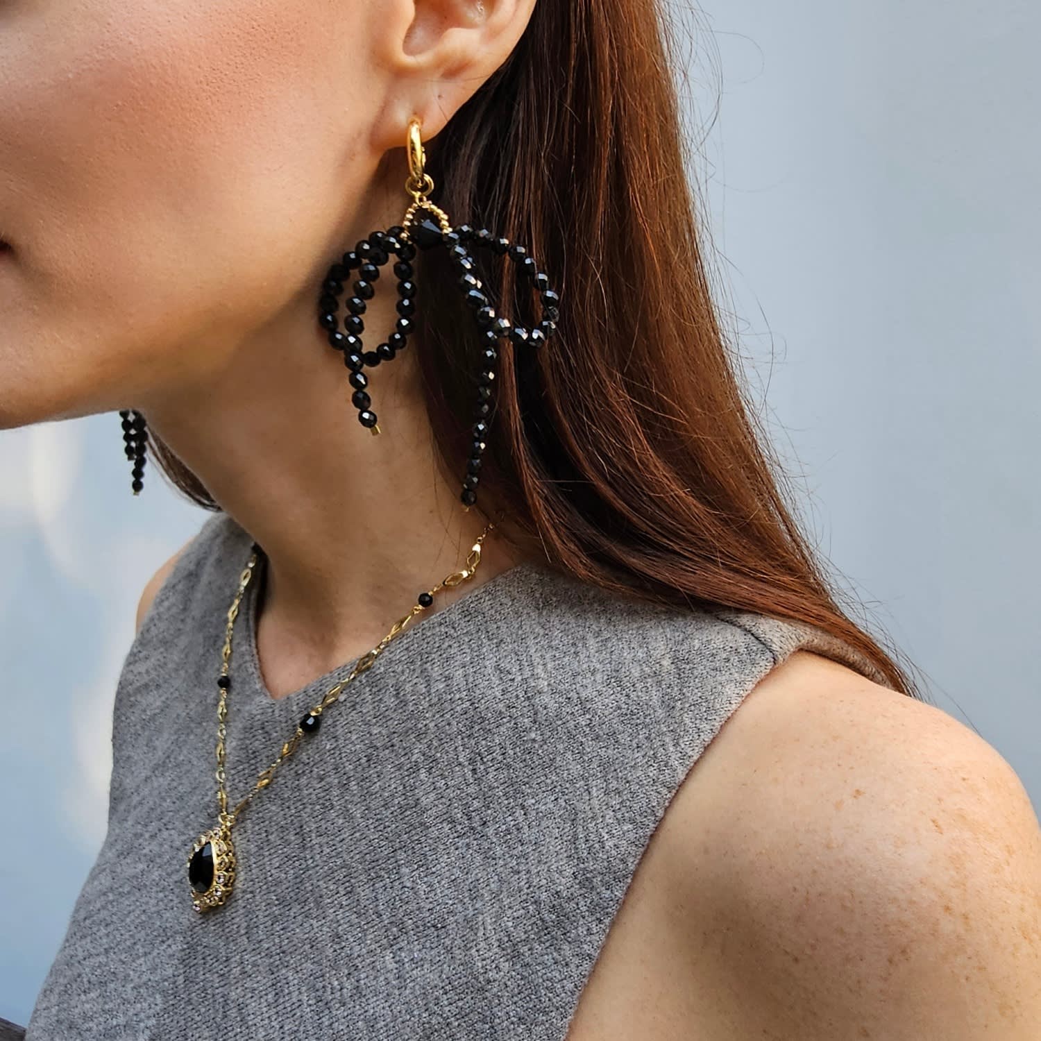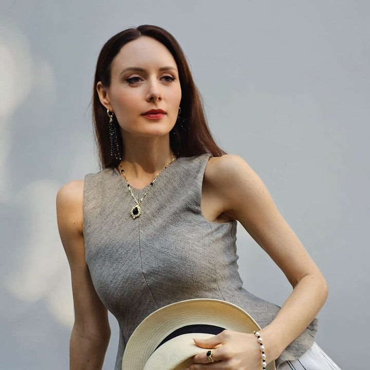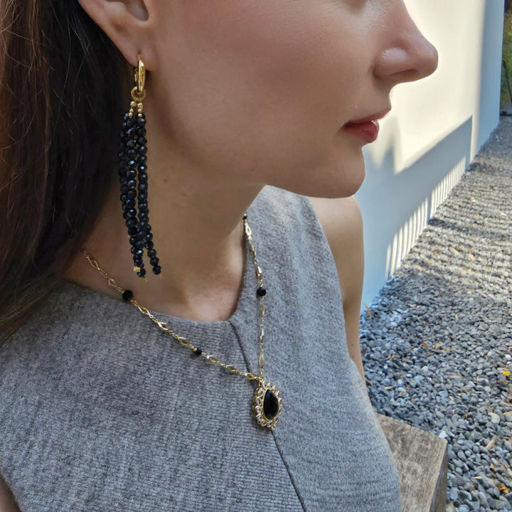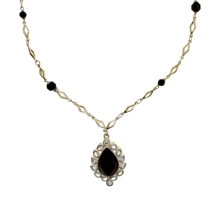 This Black Obsidian Gemstone Pendant Chain Necklace by Farra is a Victorian-inspired treasure with a protective aura. The polished obsidian pendant, rich in deep black tones, offers sophistication and emotional strength, while its finely detailed chain adds vintage charm. Perfect layered or worn solo.