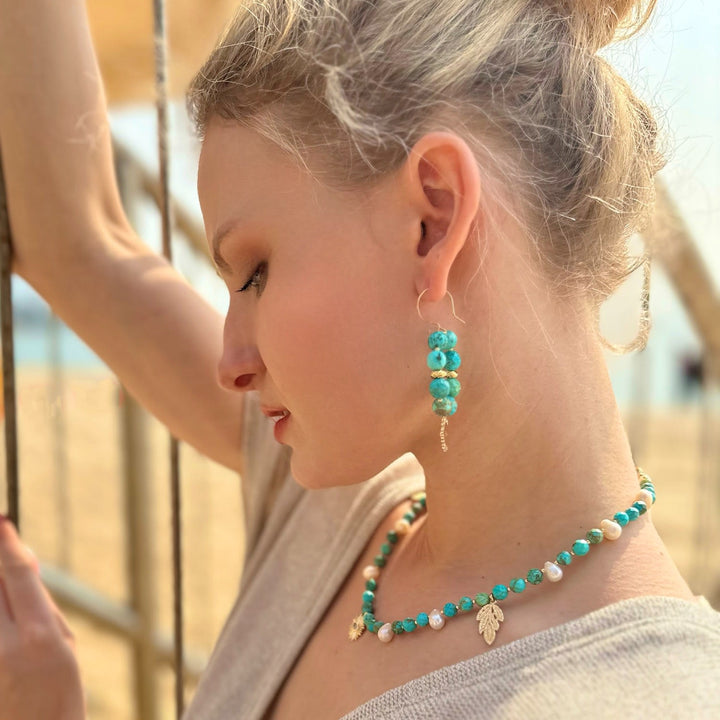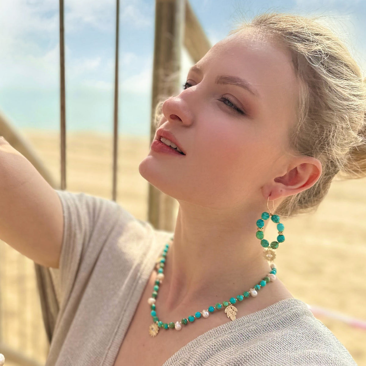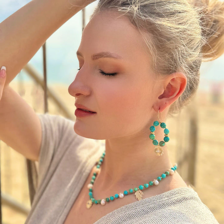 This Turquoise With Evil Eye Pendant Necklace by Farra is a beautiful accessory with a significant meaning. The evil eye pendant adds a touch of charm and offers protection and positivity. This necklace is a perfect gift for a loved one who appreciates the beauty and significance of the Evil Eye.