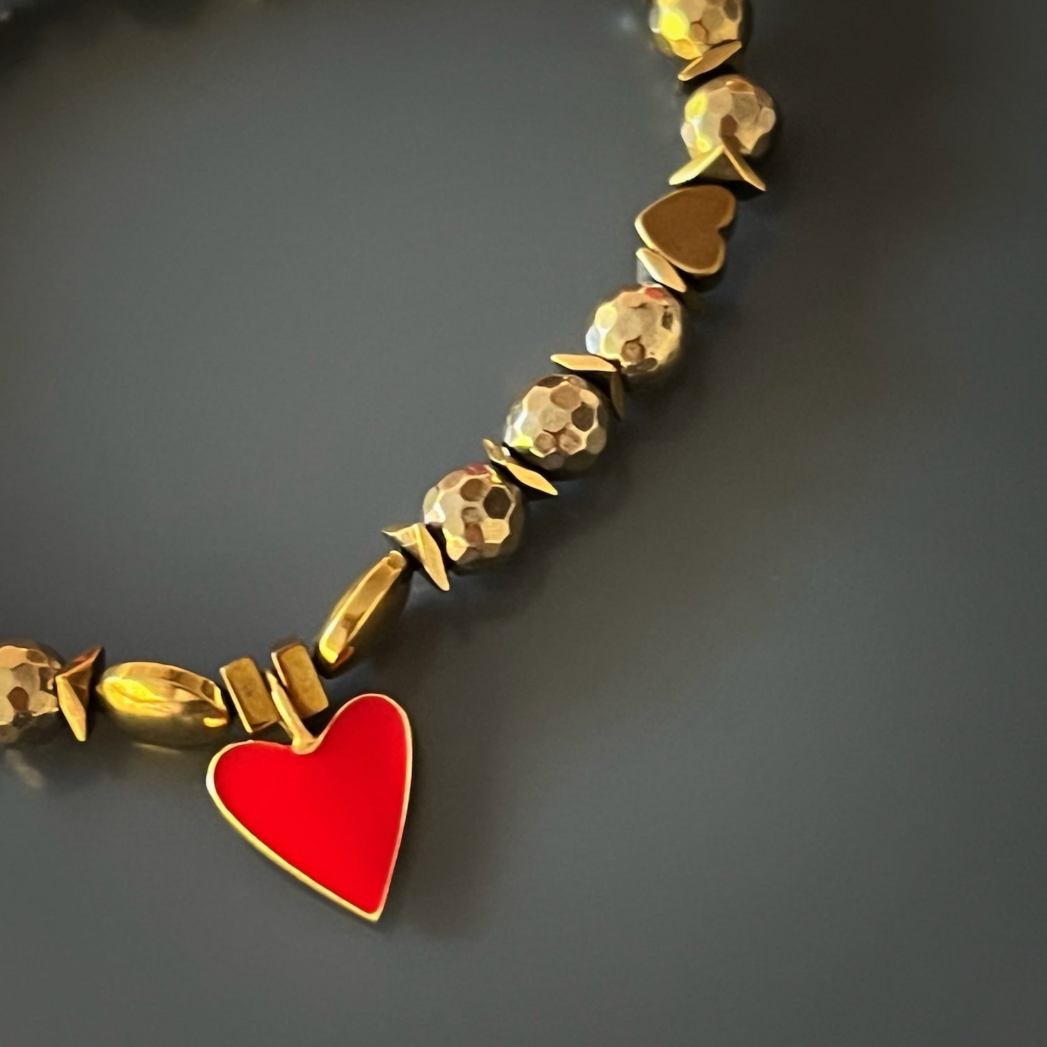 Red Heart Gold Hematite Stone Love Beaded Bracelet - Red