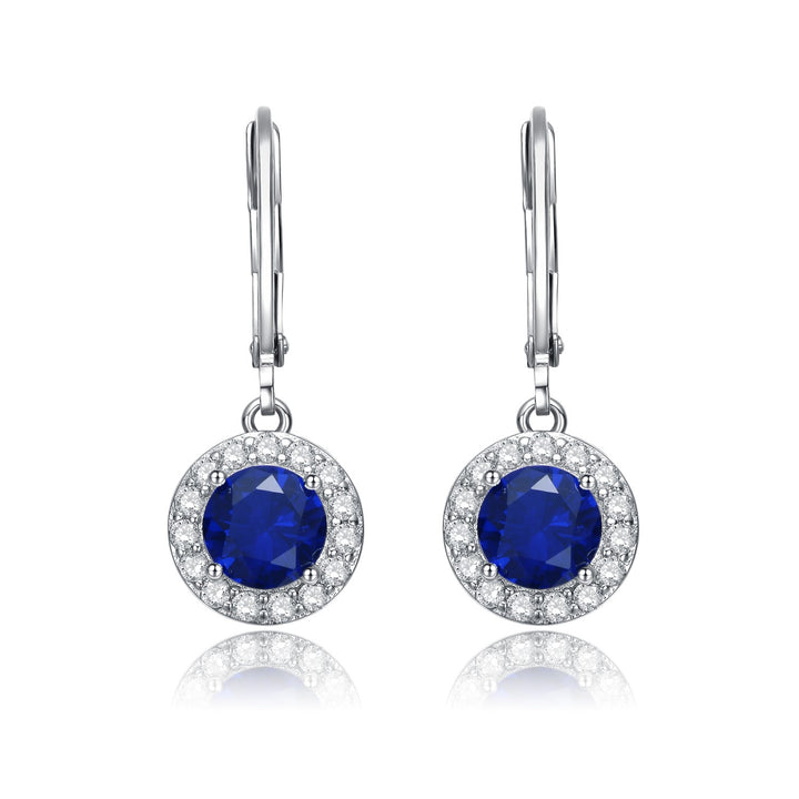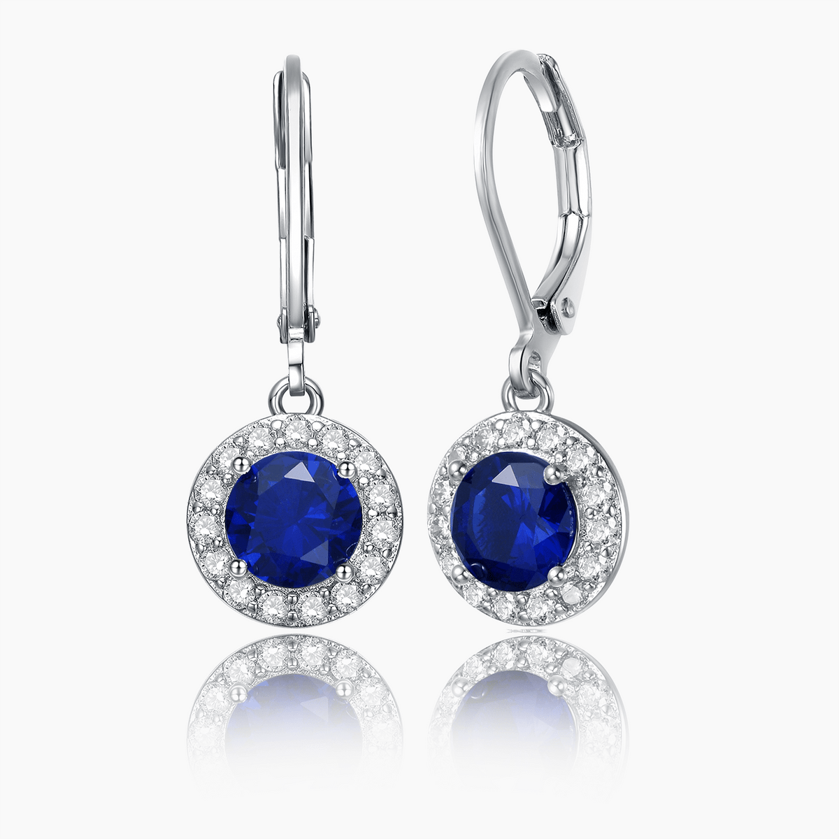 White Gold Plated Sapphire Cubic Zirconia Halo Drop Dangle Earrings