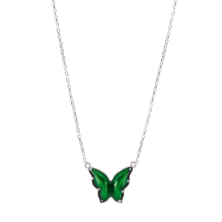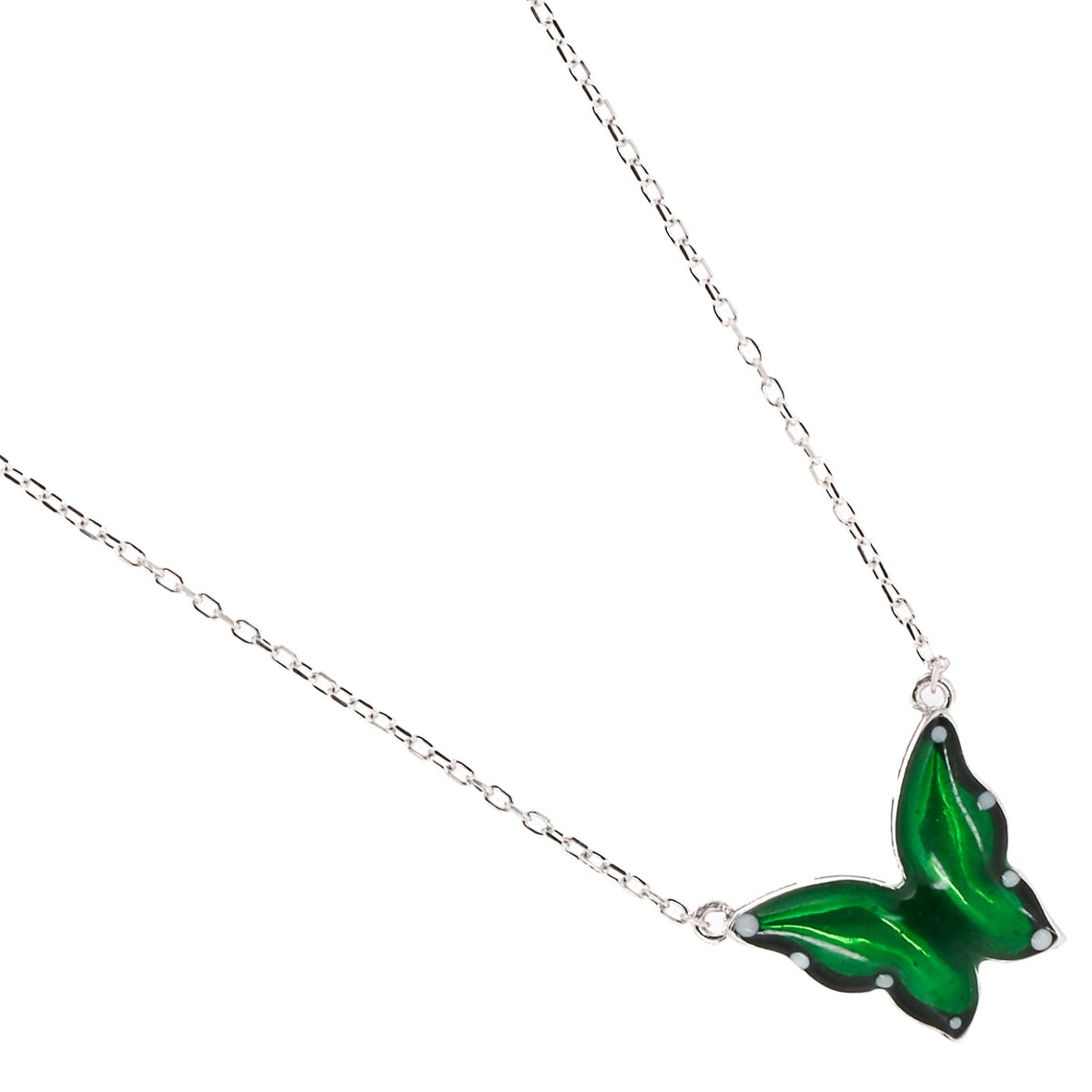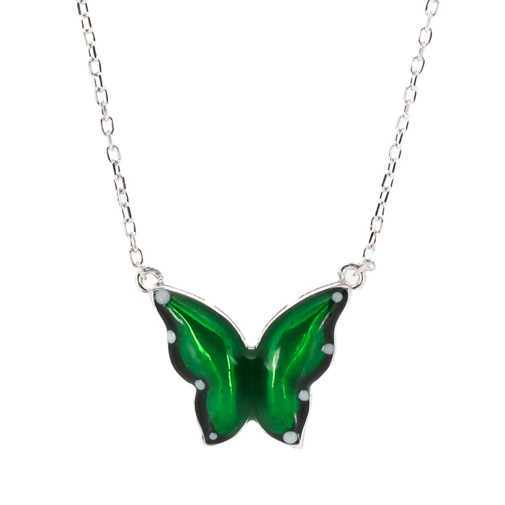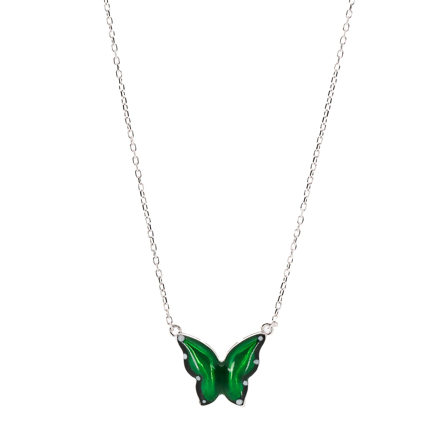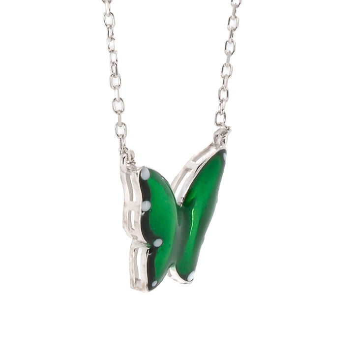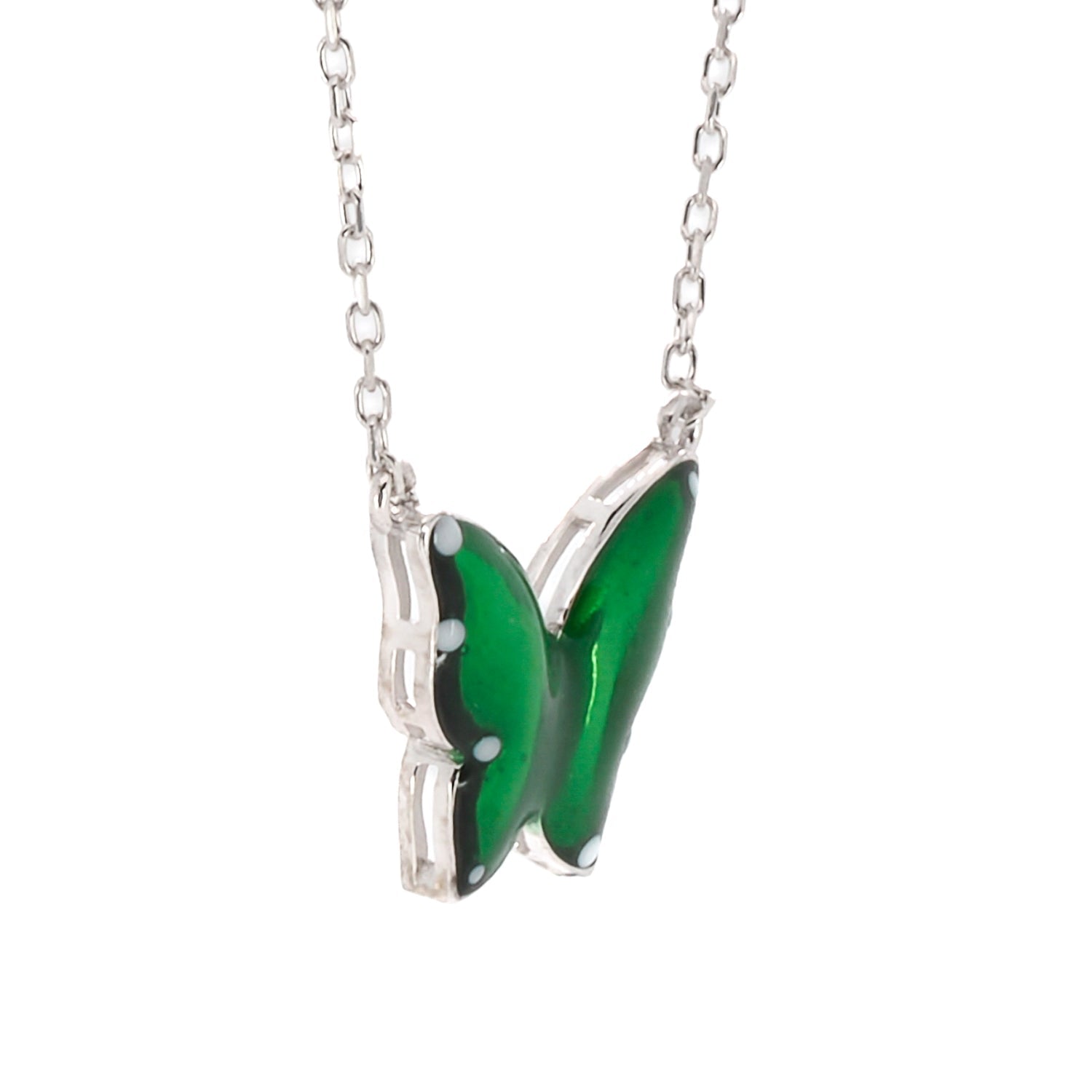 Silver Abundance Green Enamel Butterfly Necklace - Green