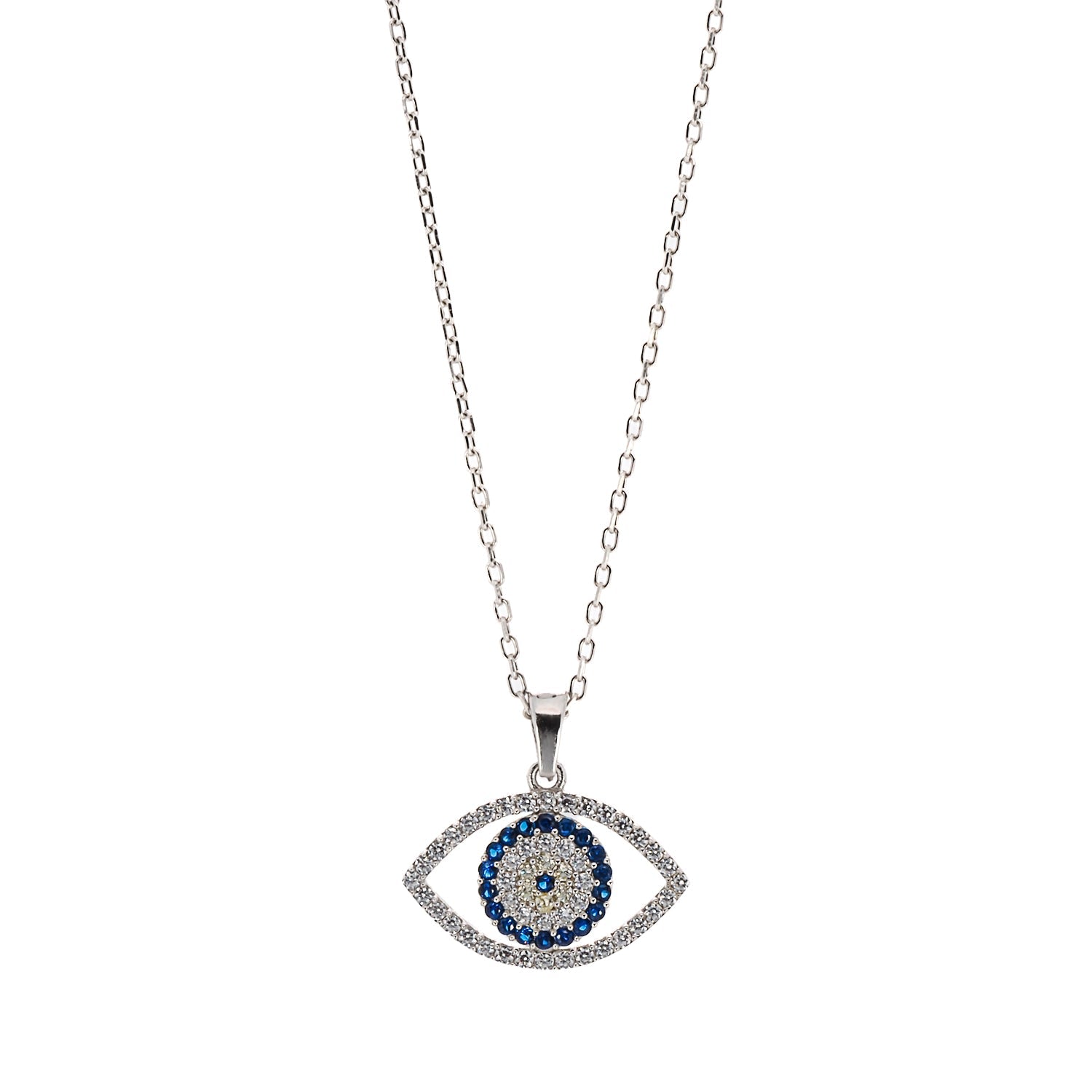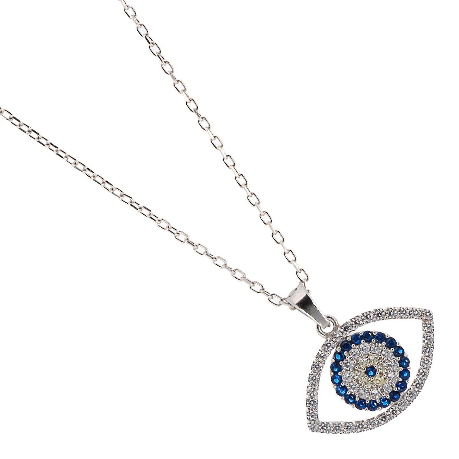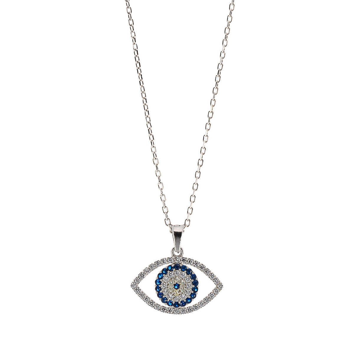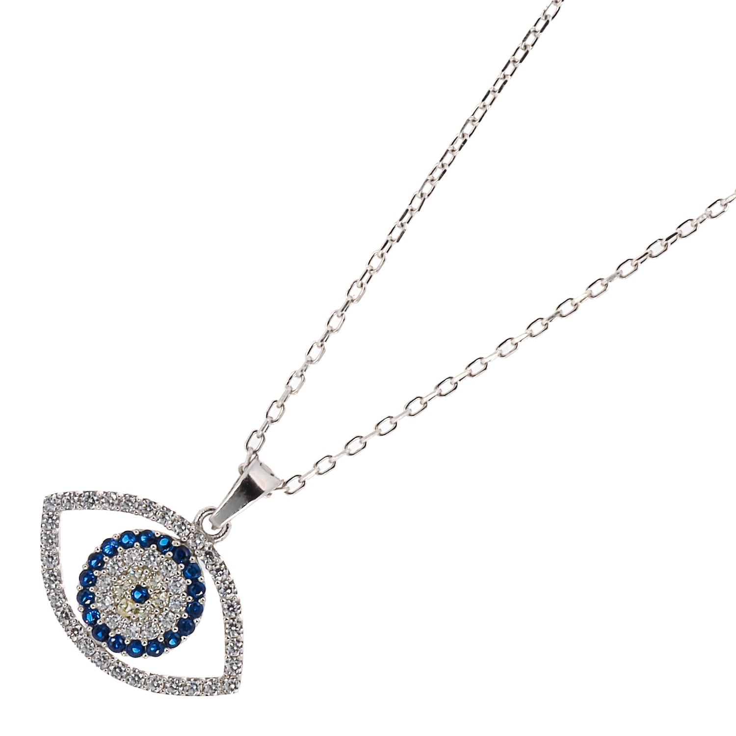 Sparkly Evil Eye Sterling Silver Necklace - Silver
